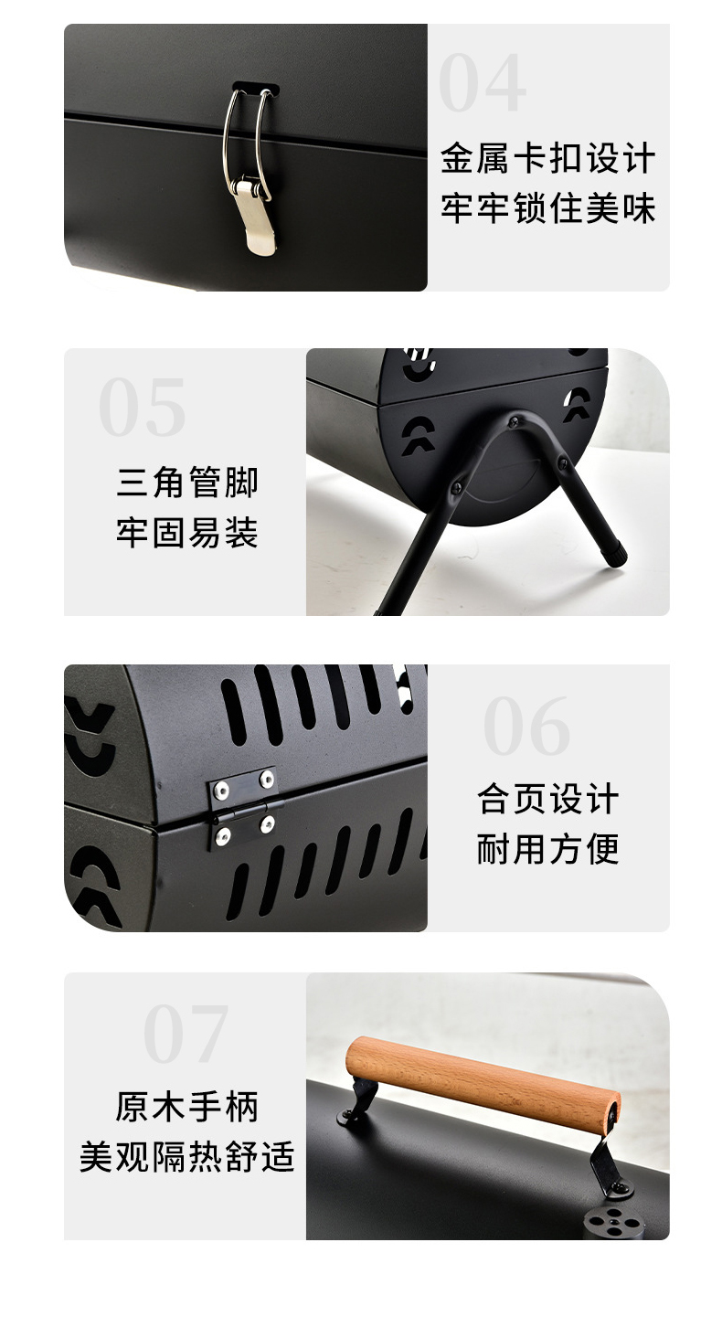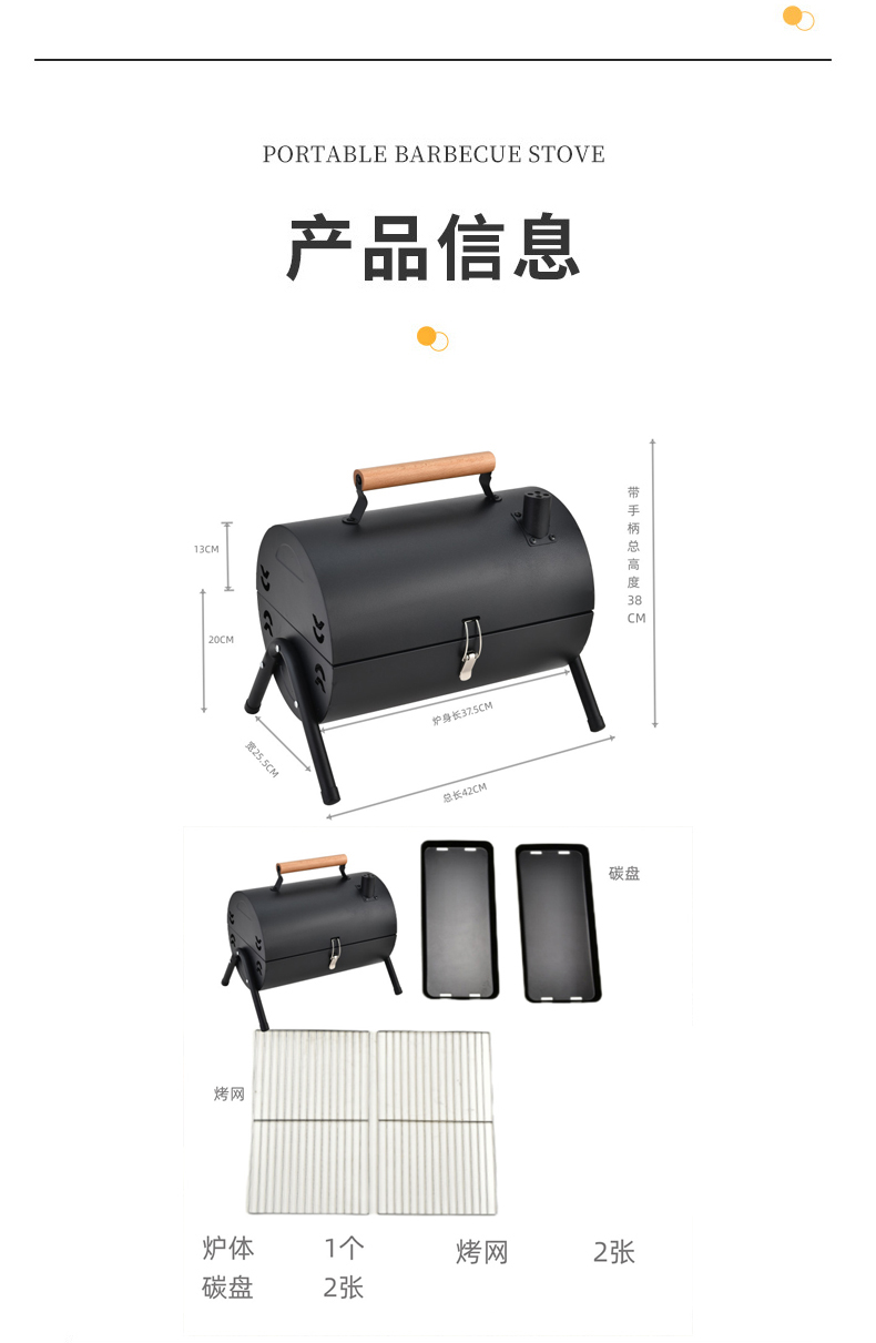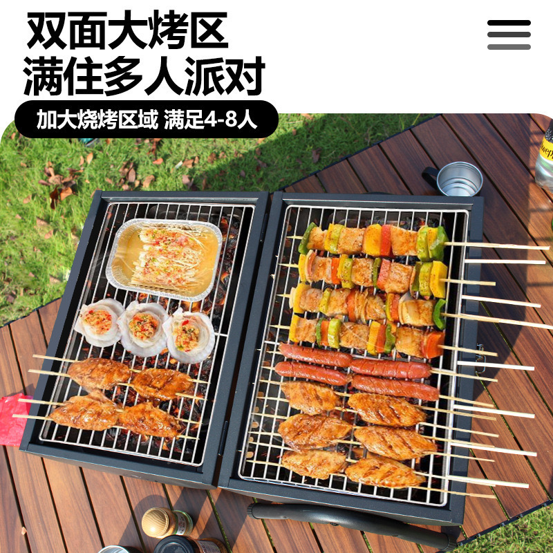 趣游帮 烧烤炉烧烤架家用户外庭院焖烤炉 折叠便携烤串架户外碳烤炉 黑色烟囱炉+烤网 双面可烤Y53