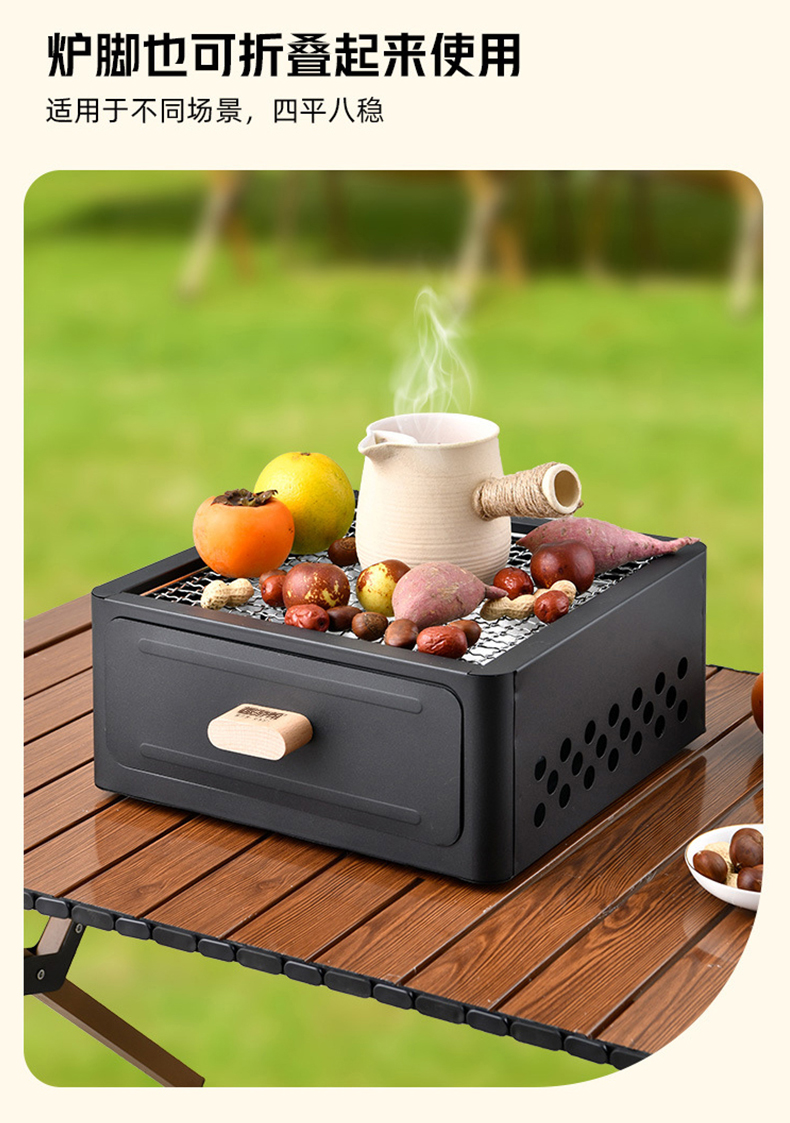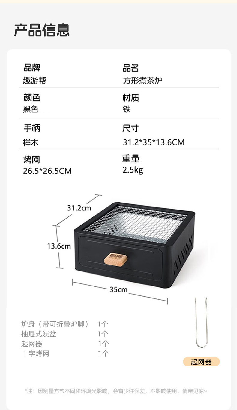 趣游帮 户外围炉煮茶套装家用户外 烧烤炉烤火盆炭火炉碳炉露营烧烤 方形煮茶炉Y76