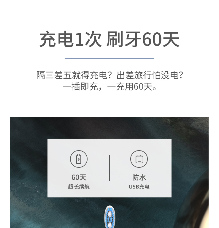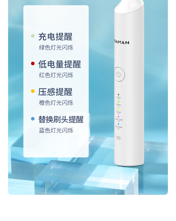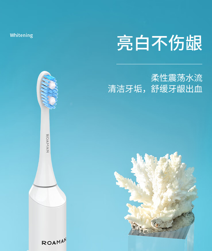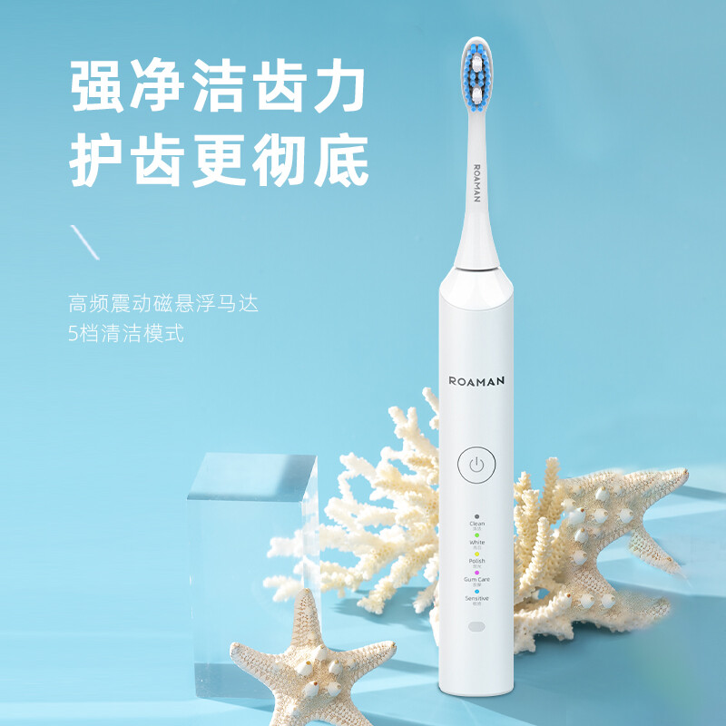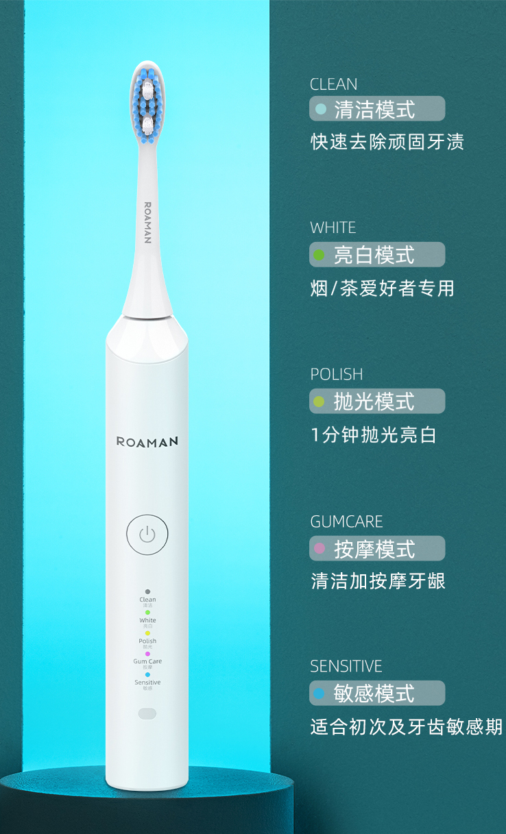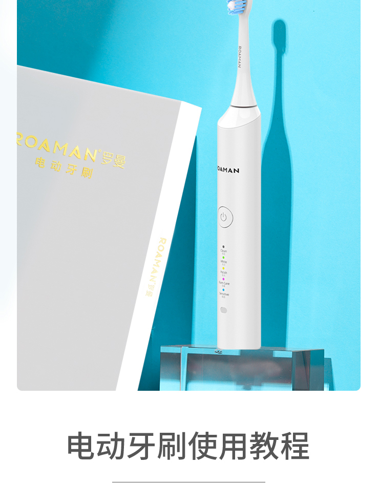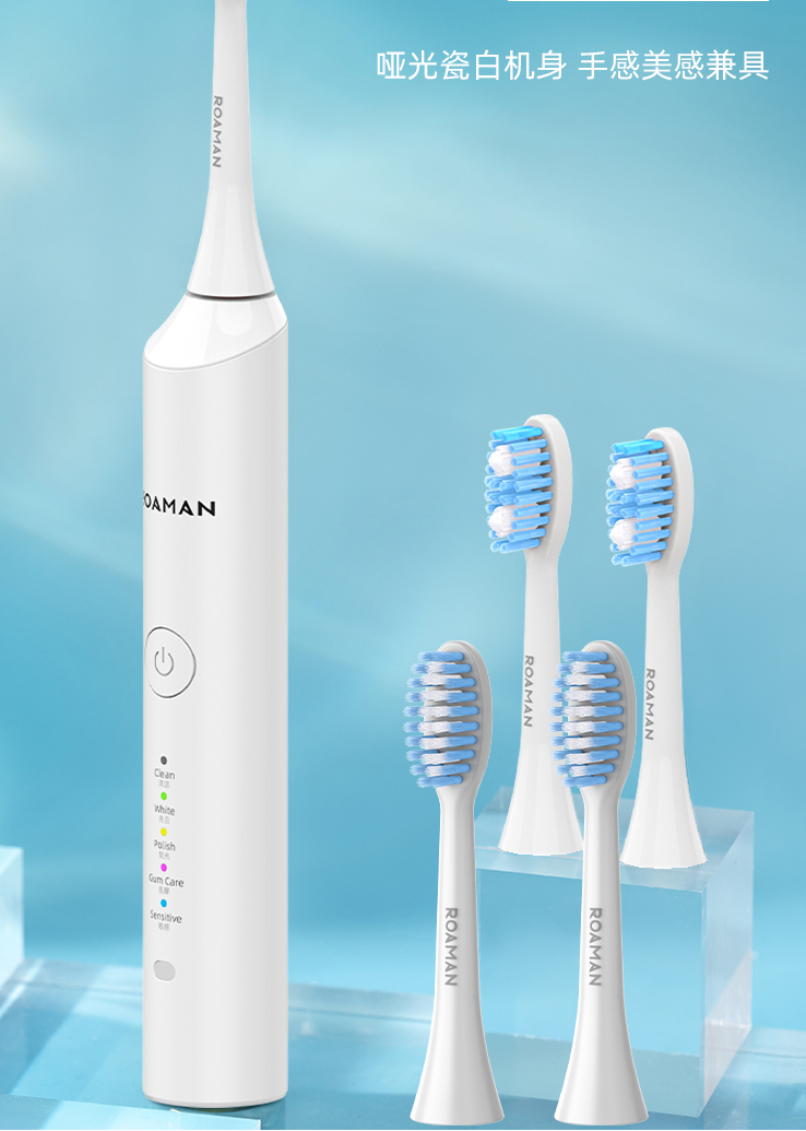 罗曼E5S 成人电动牙刷 5档清洁模式 配备4个刷头