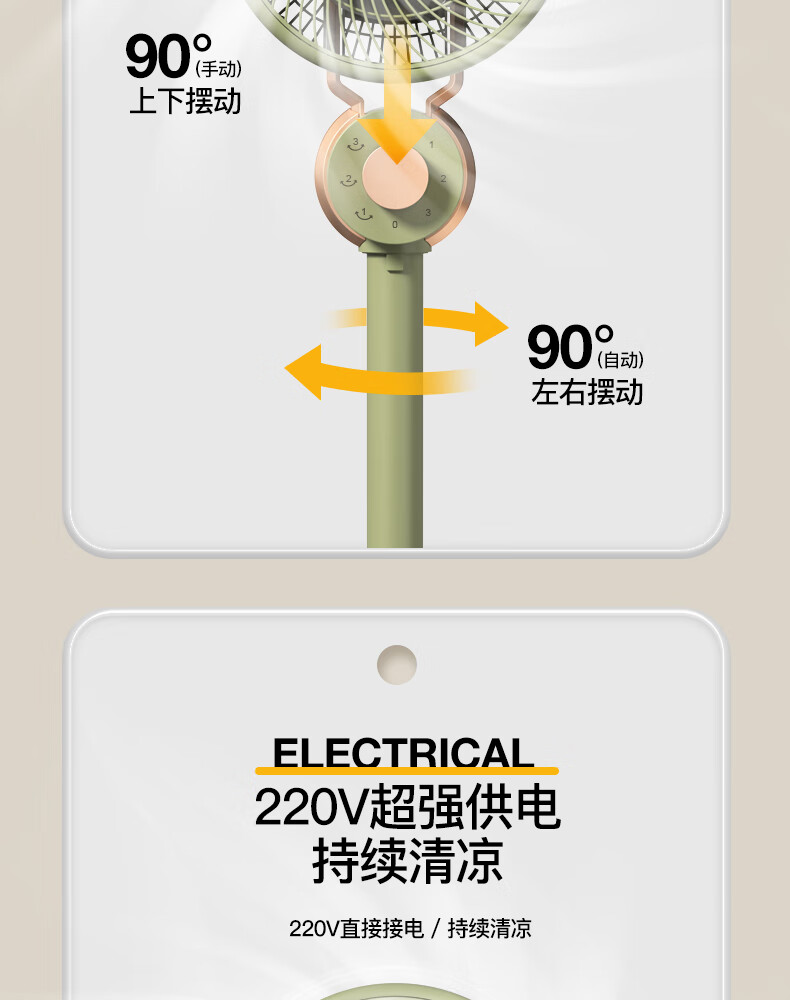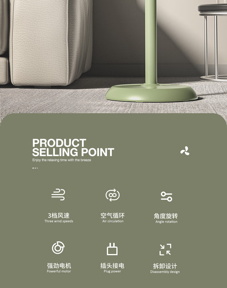 ApiYoo艾优电风扇落地扇空气循环扇F13家用办公室宿舍便携强劲风扇父亲节礼物 绿色