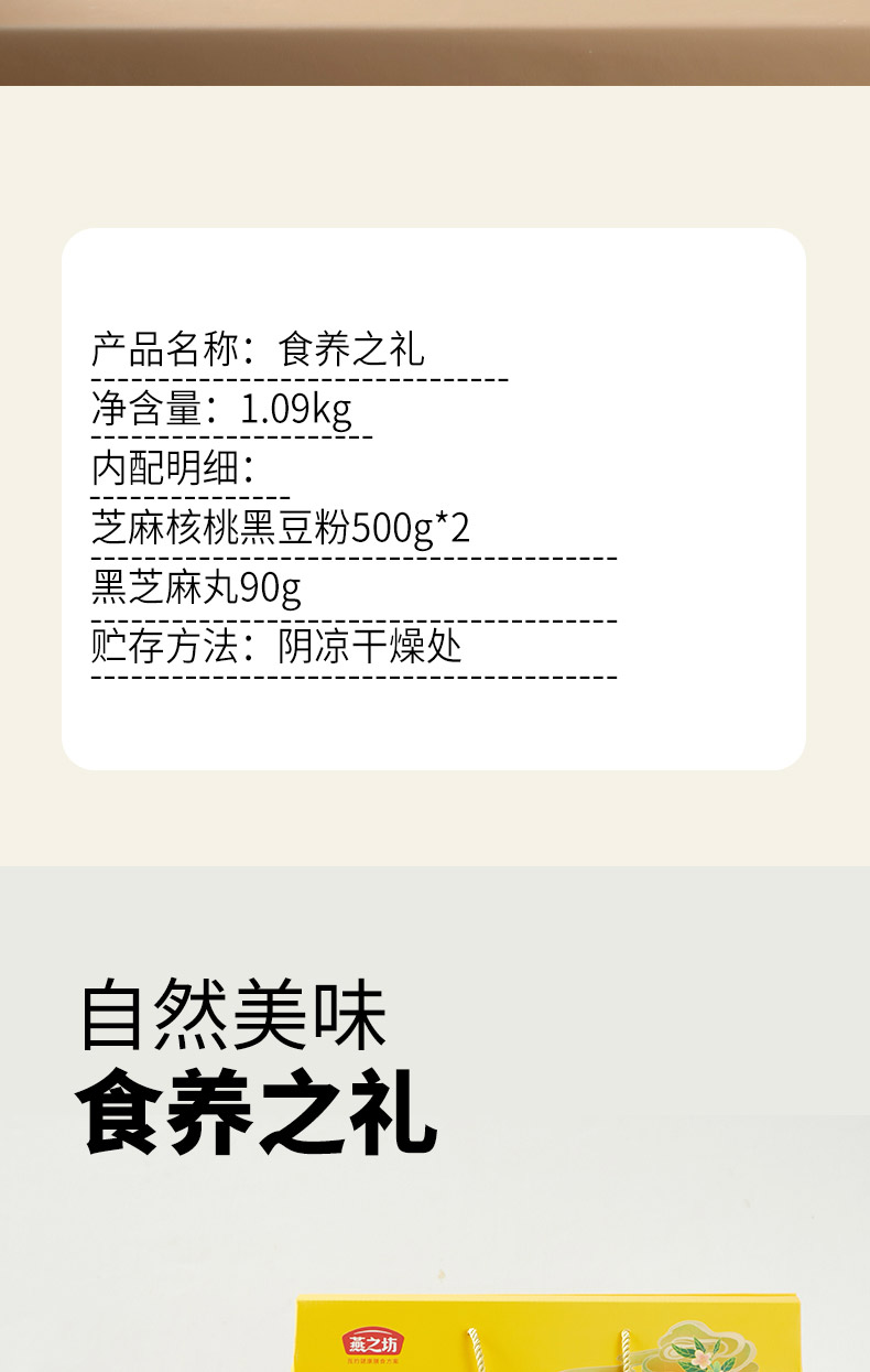 燕之坊食养之礼礼盒1.09kg【芝麻核桃黑豆粉500g*2+黑芝麻丸90g】