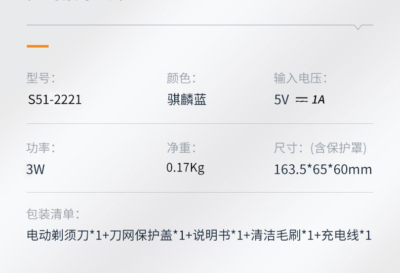 海尔Haier 电动剃须刀 刮胡刀 HS51-2221 蓝色 节日好礼 送朋友送男友