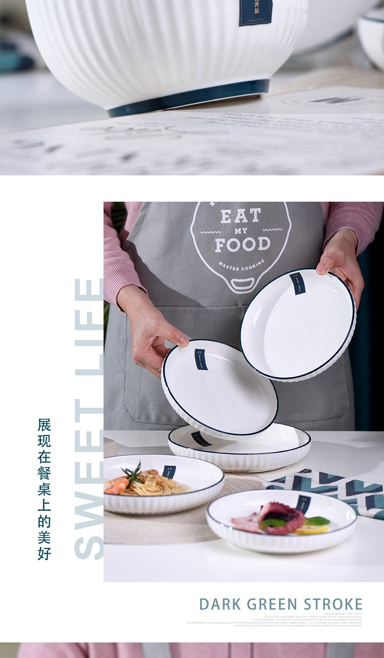 唯都简约雅纹餐具套装高档轻奢陶瓷碗盘筷子组合装家用厨房高颜值碗碟餐具W-S016