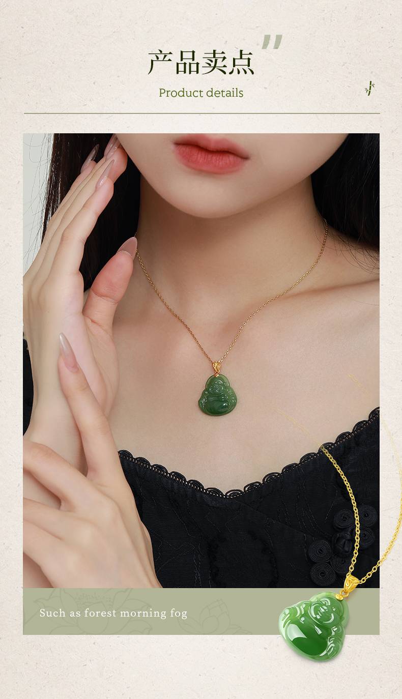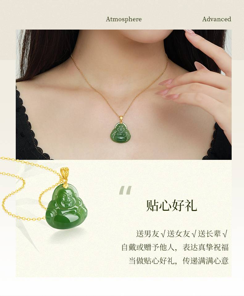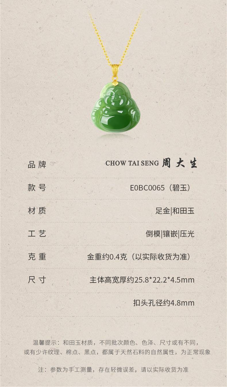 周大生黄金镶玉弥勒佛吊坠女佛公和田碧玉笑佛挂坠E0BC0065