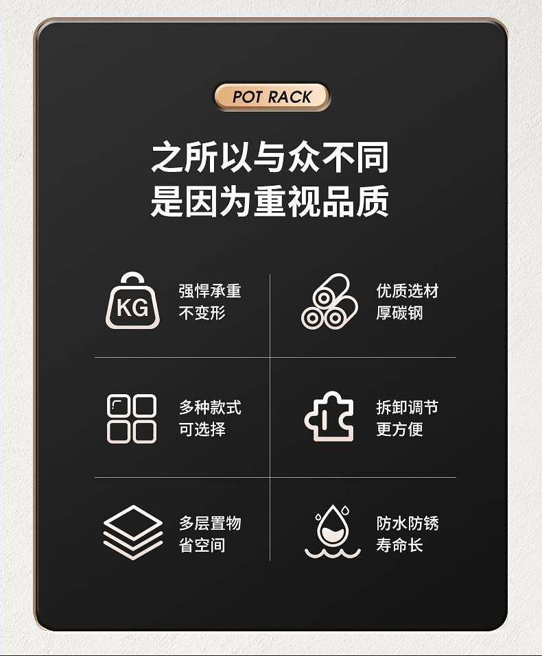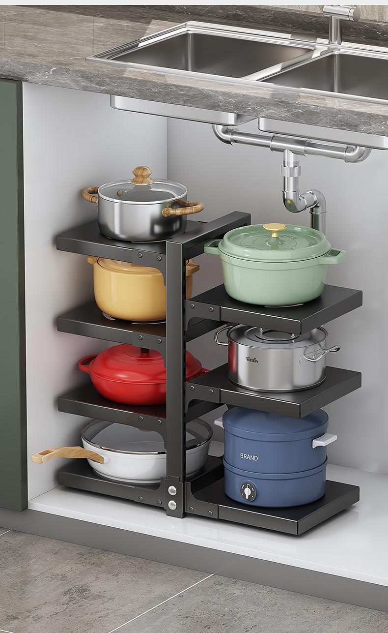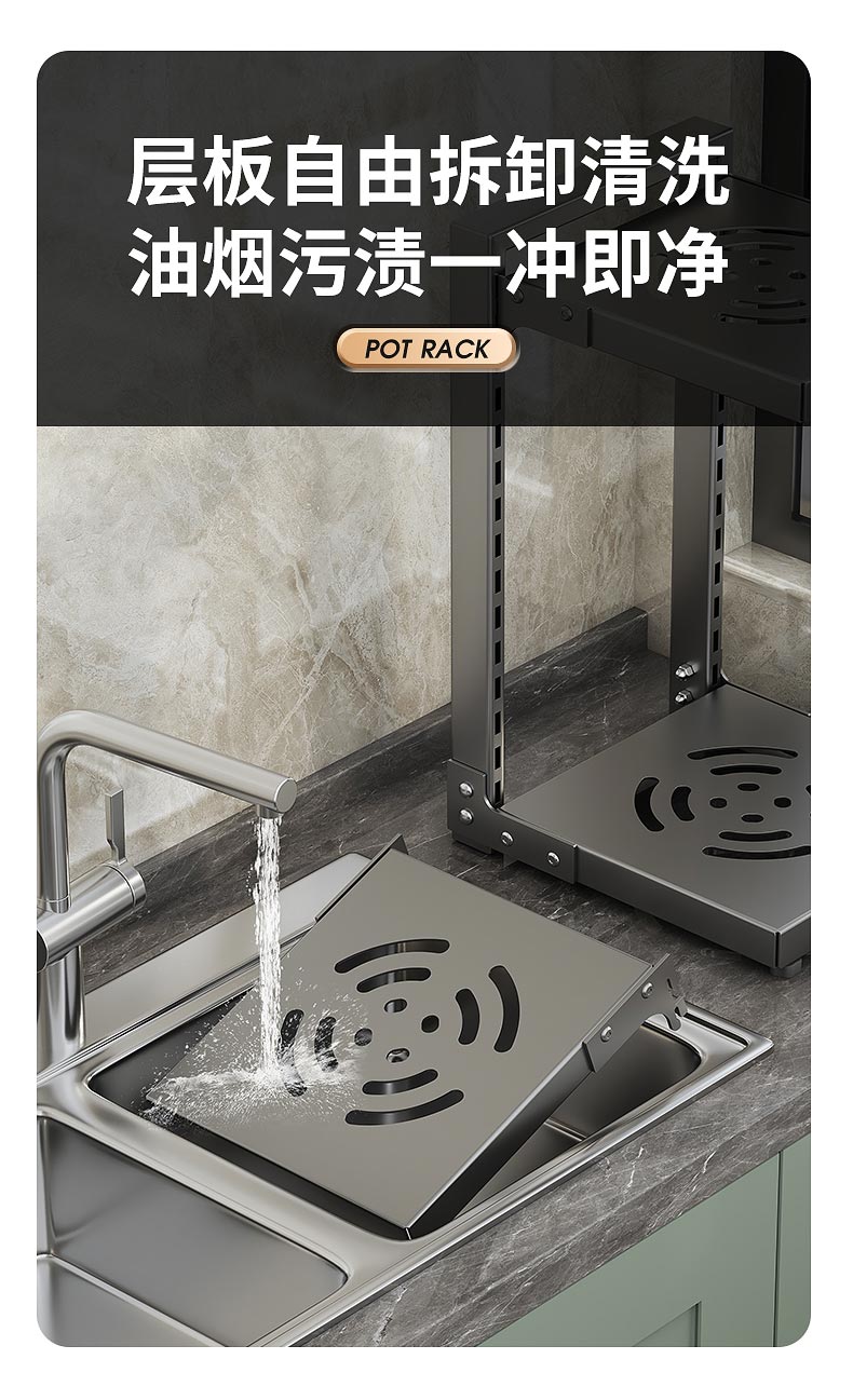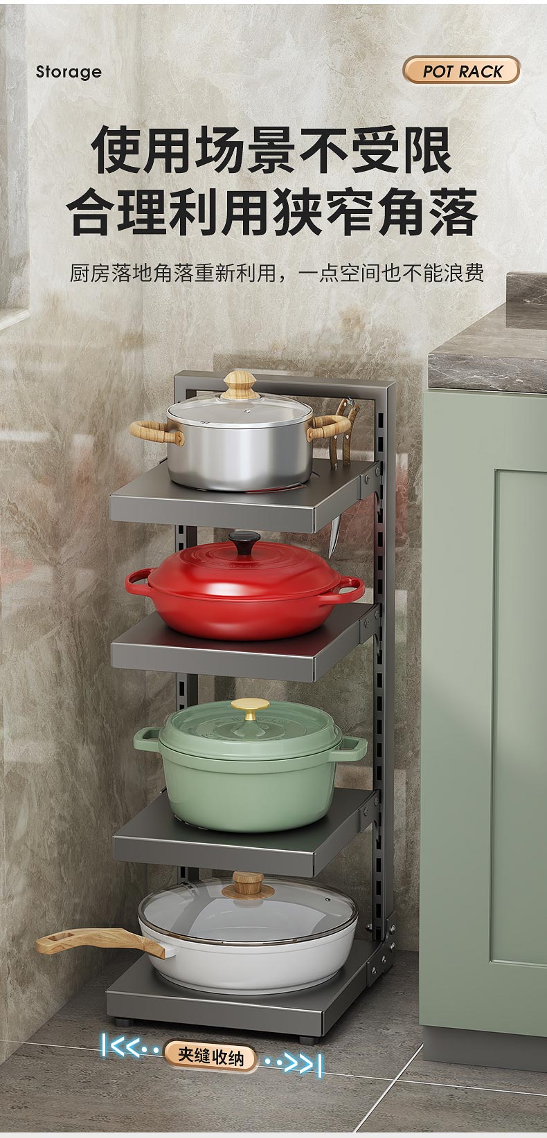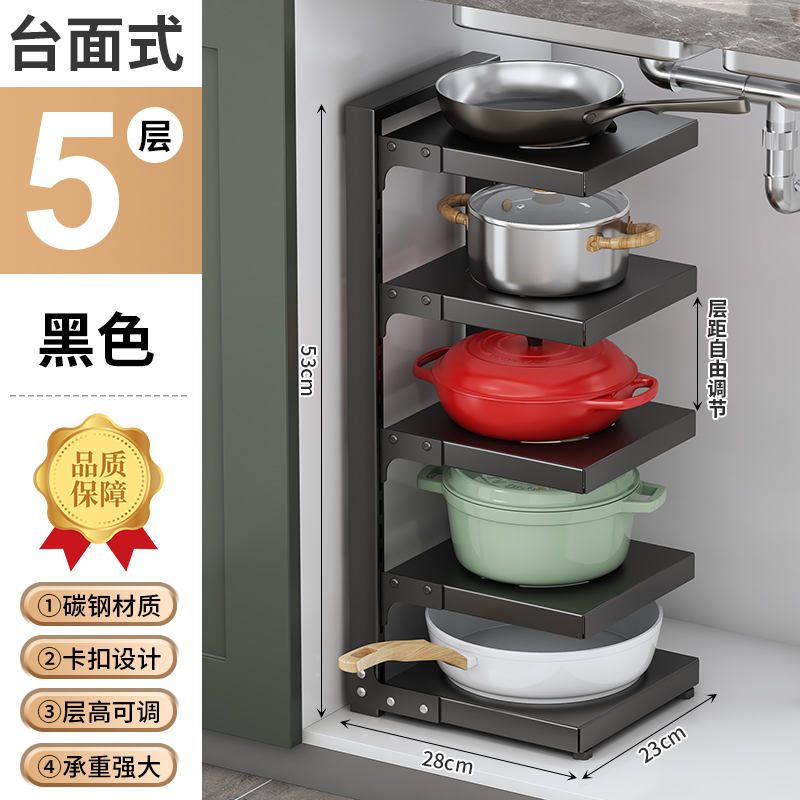 海鲨厨房置物架五层台面下锅架【板面】1756白色/黑色/枪灰色28*23*53cm