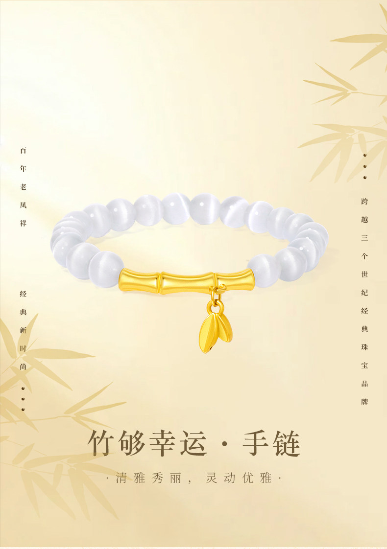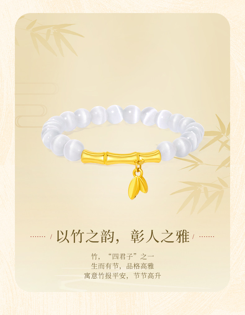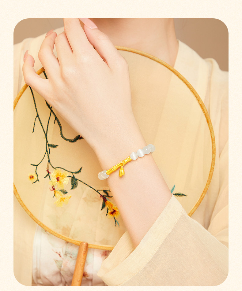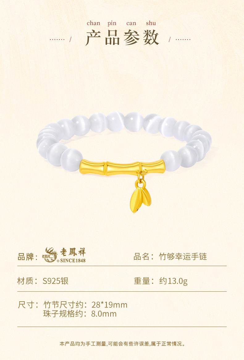老凤祥纯银925银国风竹节猫眼石竹节手串LFXSK0303
