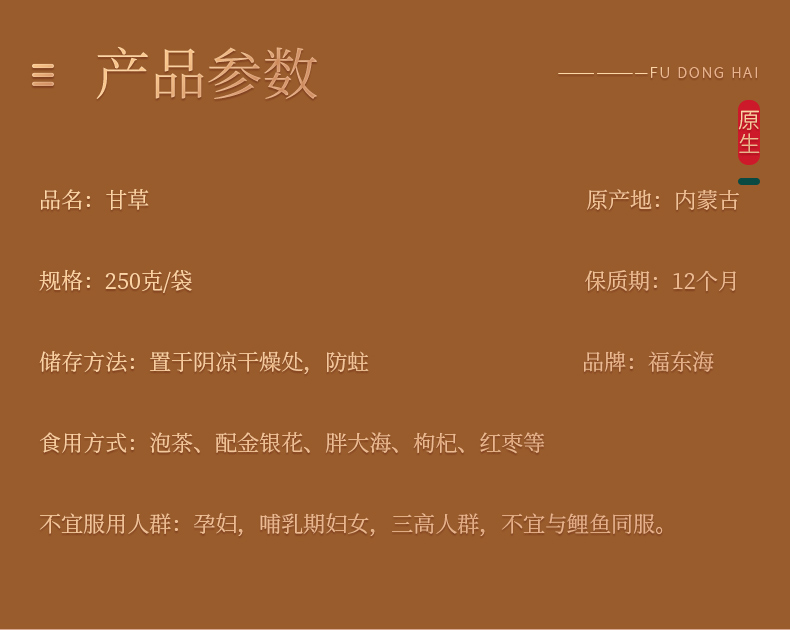 【福东海】甘草 250克/袋(初级农产品)