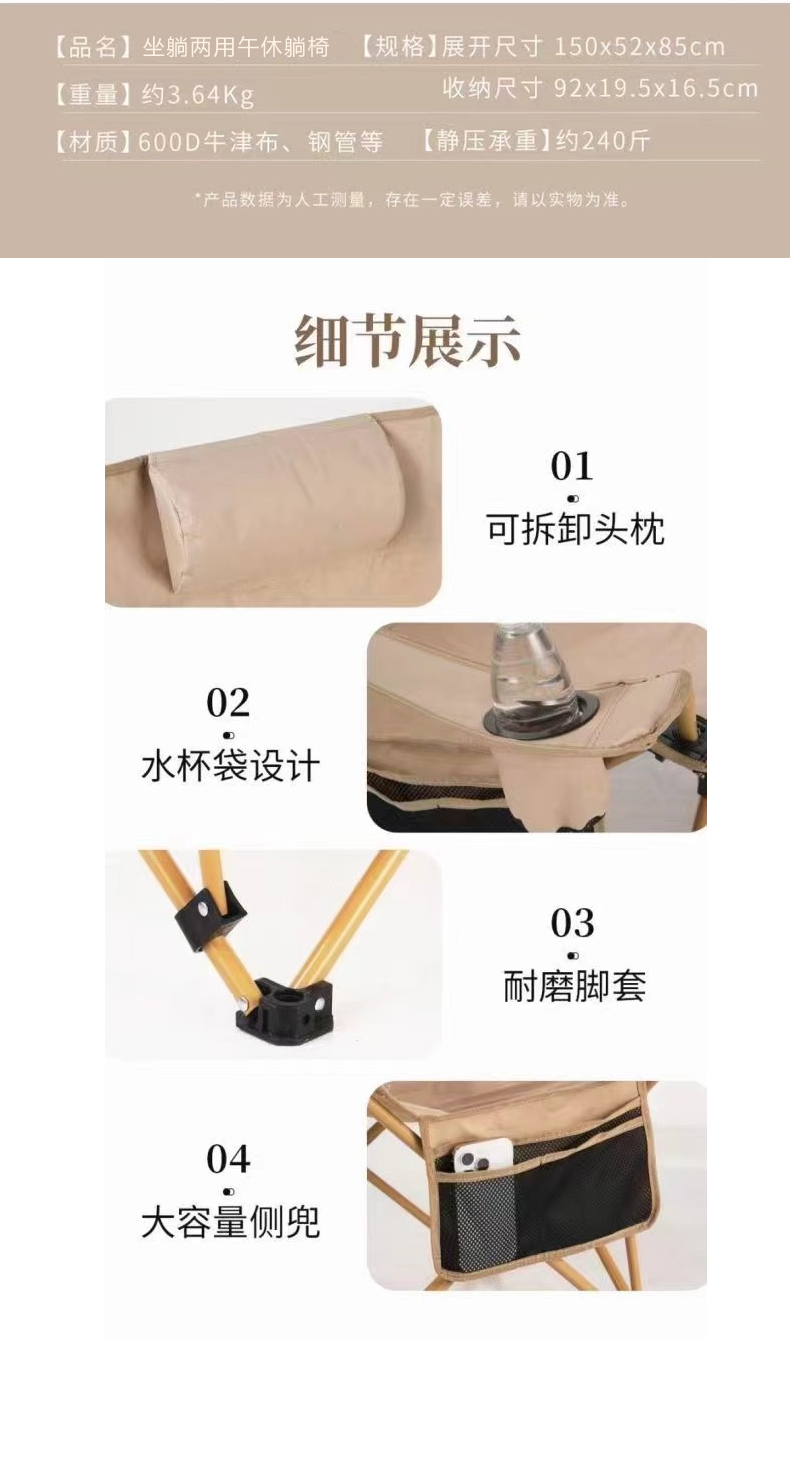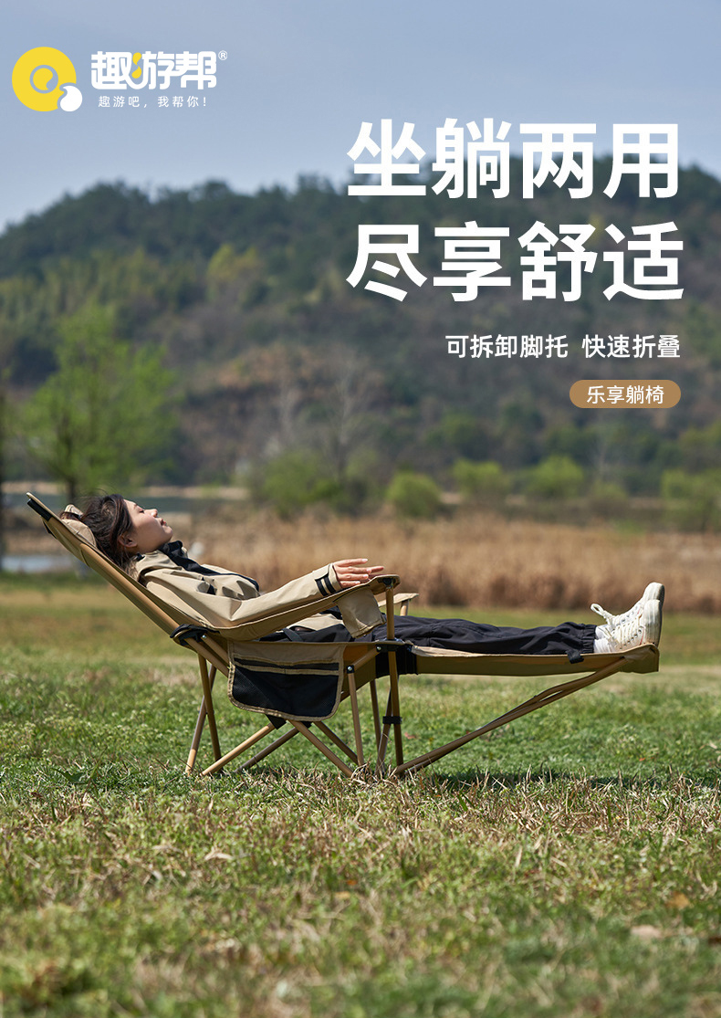趣游帮 户外露营便携式高背椅带头枕可调节导演椅 野营舒适休闲折叠躺 可调节坐躺两用午休躺椅子Q320