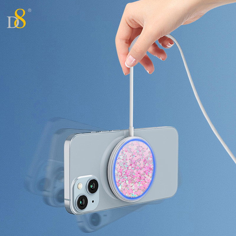 D8磁性无线充电器缤纷流沙超薄便携15W手机充电器使用苹果PWB-2131