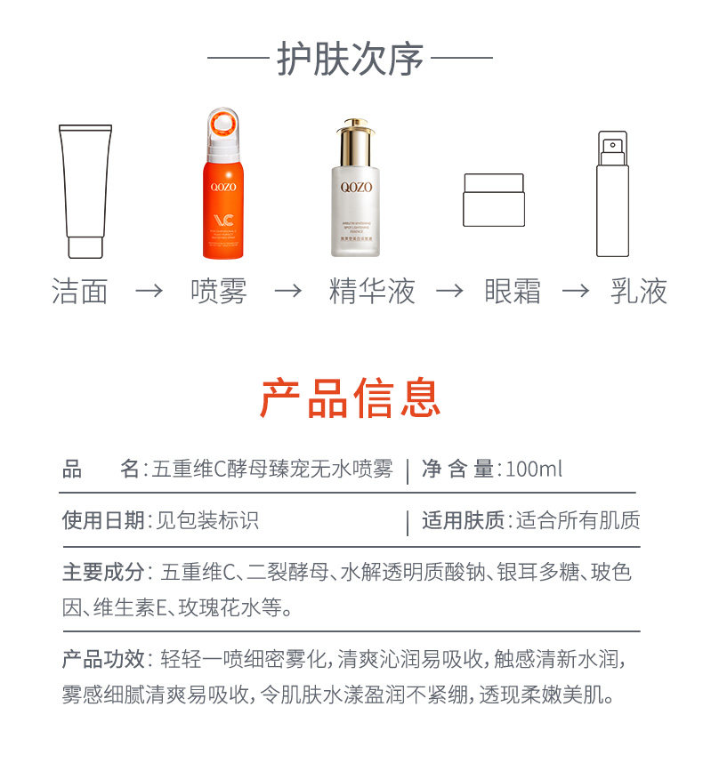 QOZO 五重维C酵母臻宠无水喷雾舒缓肌肤修复泽润保湿护肤水150ml