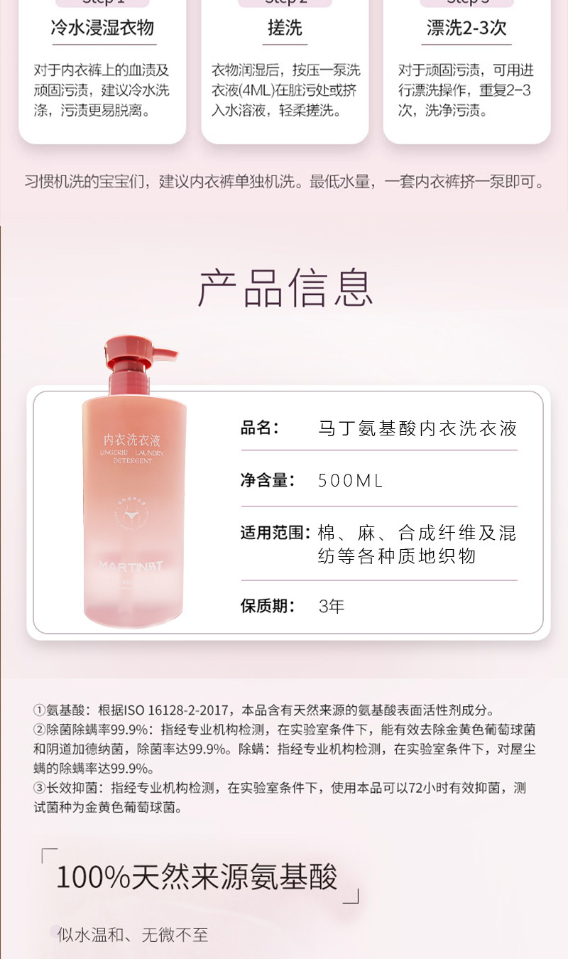 马丁氨基酸内衣内裤专用洗衣液杀菌除螨去黄去渍洗护液家用女生