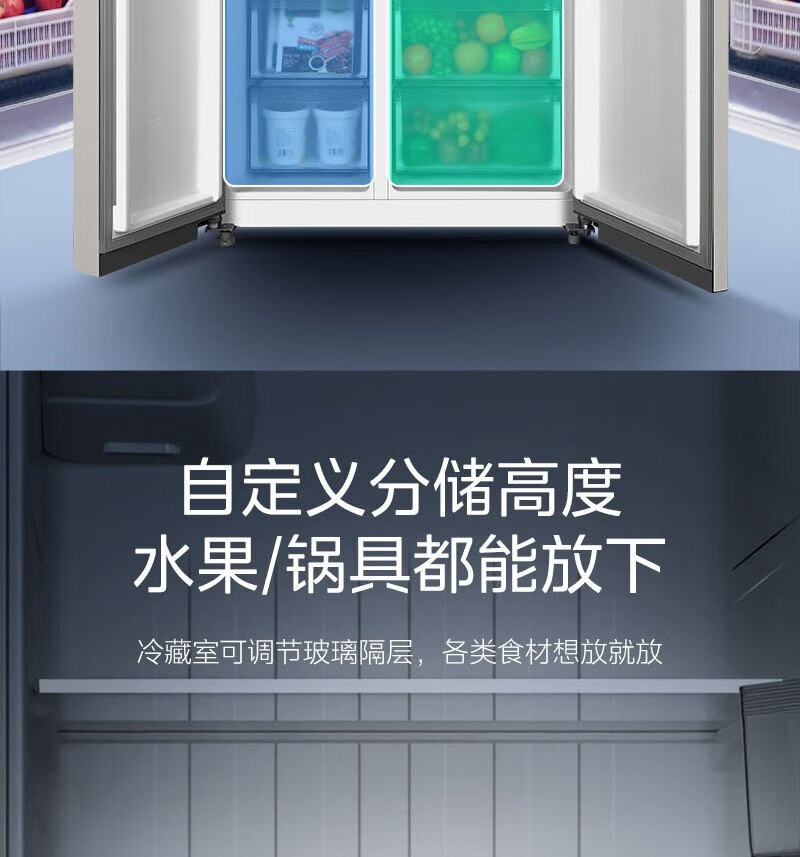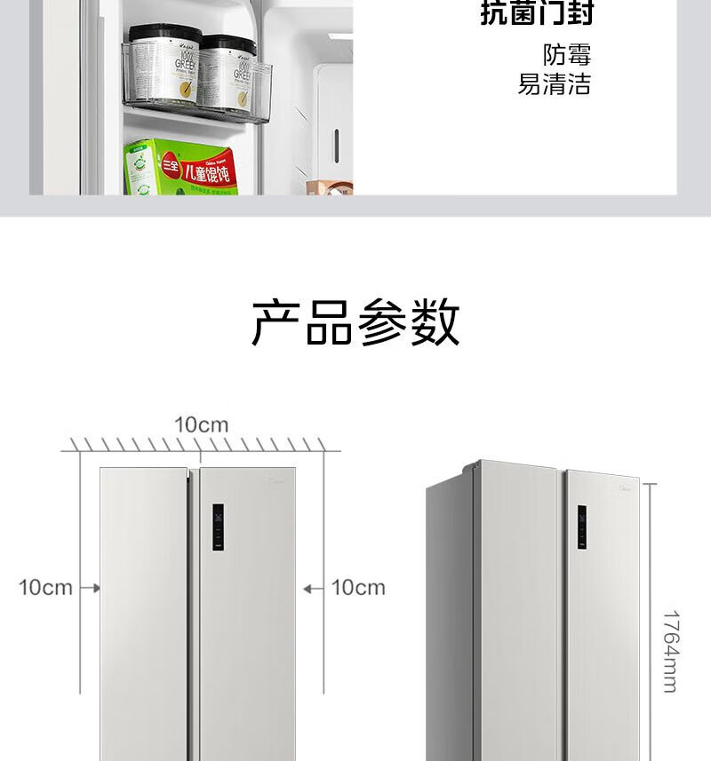 美的/Midea 546升大容量冰箱 独立双循环系统锁鲜 一级双变频节能轻音大冰箱 风冷无霜 对开门 BCD-546WKPM(ZG)檀木褐