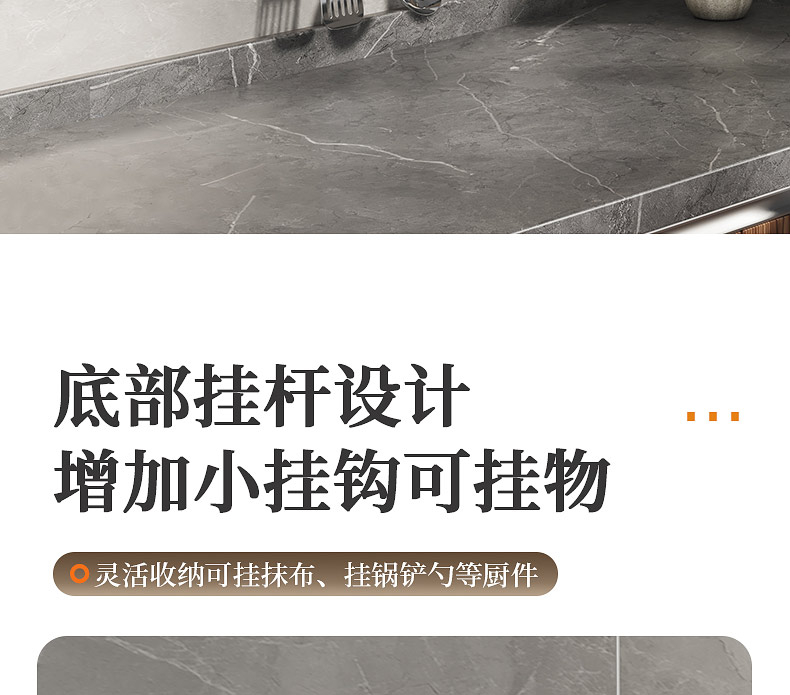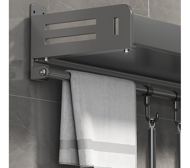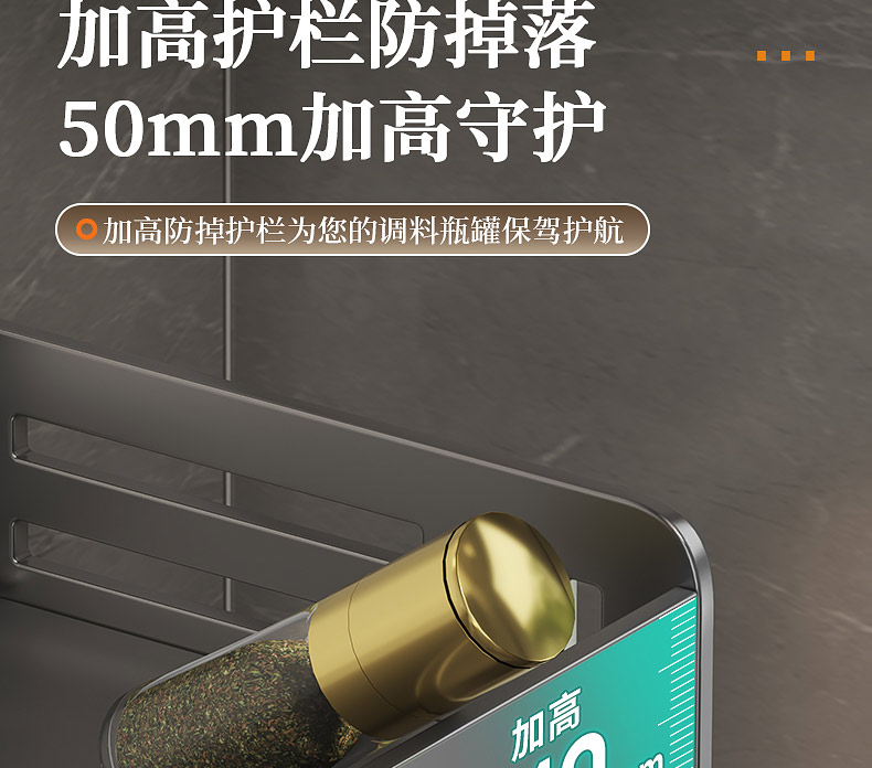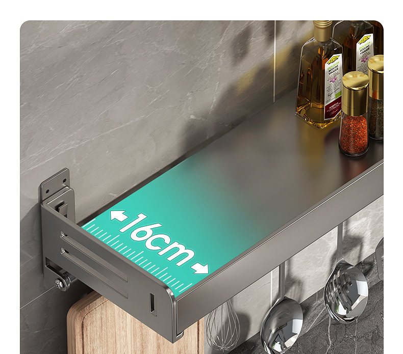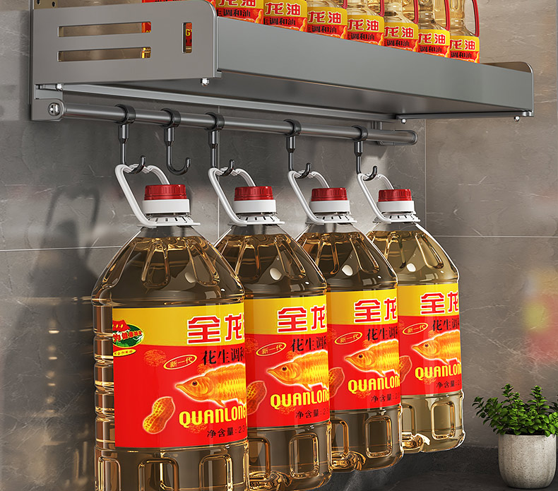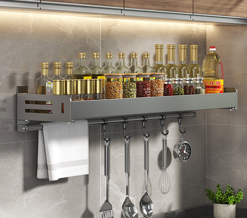 海鲨厨房置物架壁挂调料架50*16cm(带杆)+5钩HS3812枪灰色