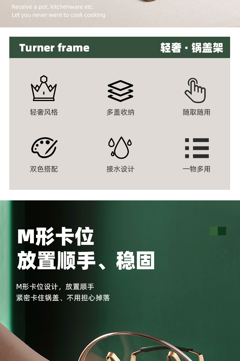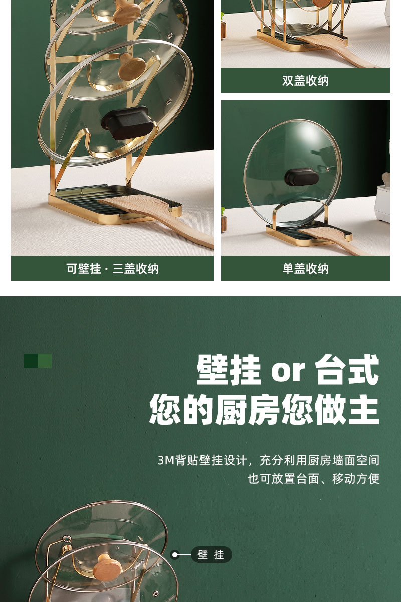 海鲨厨房置物架轻奢锅盖架台面锅盖架三层款【HS-GGJ】18*13*34cm