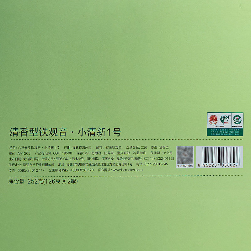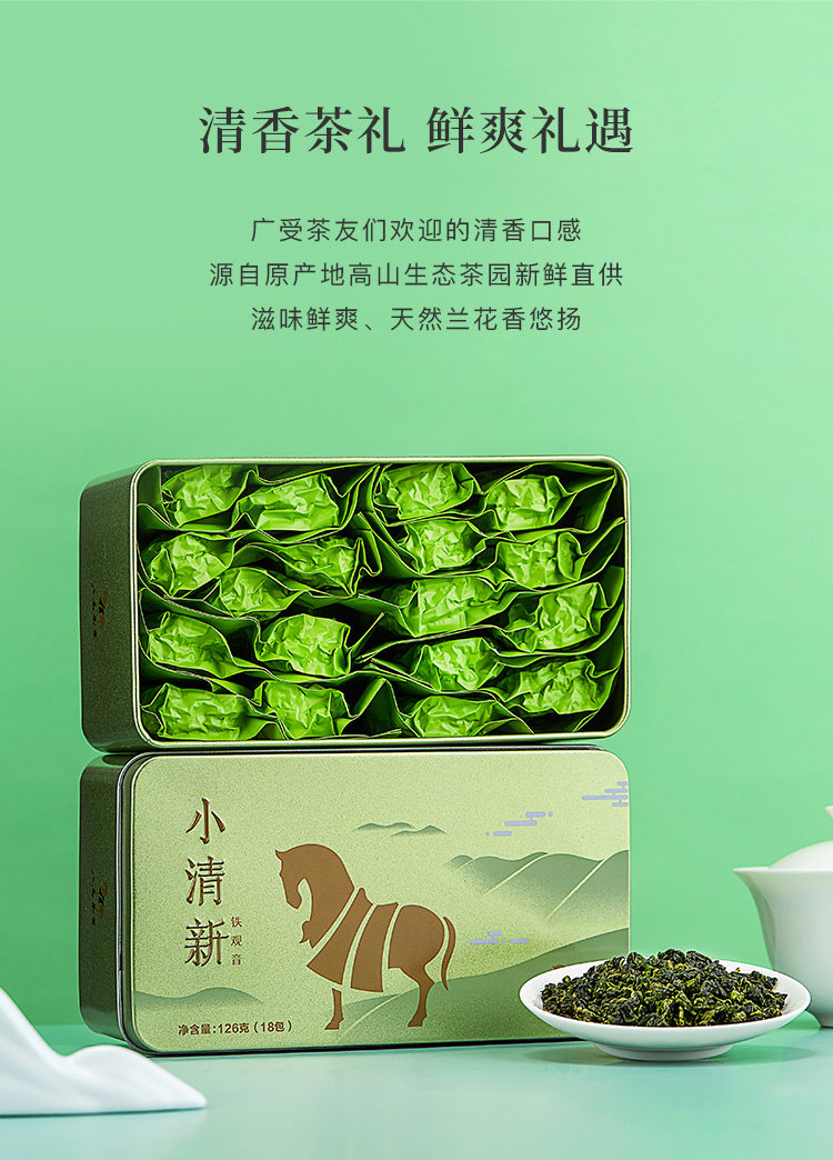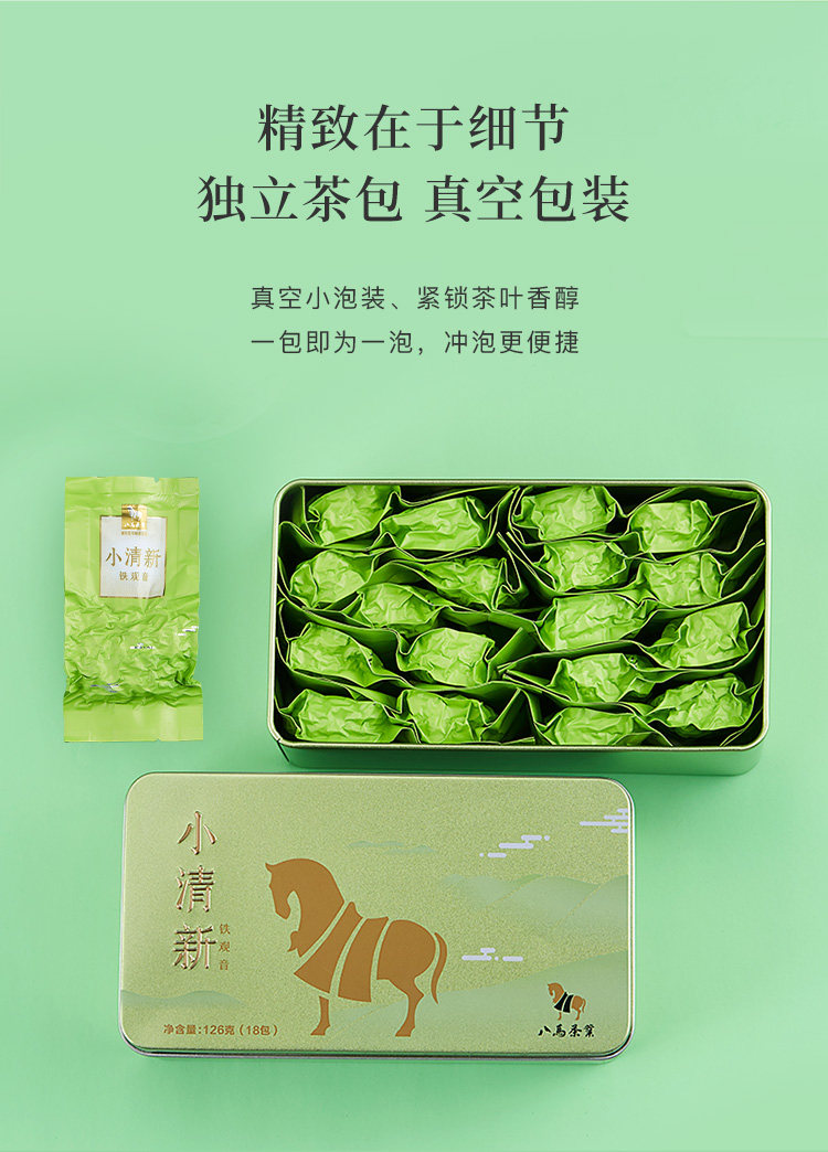 八马茶业小清新1号安溪铁观音清香型乌龙茶送礼茶叶真空小包装礼盒装