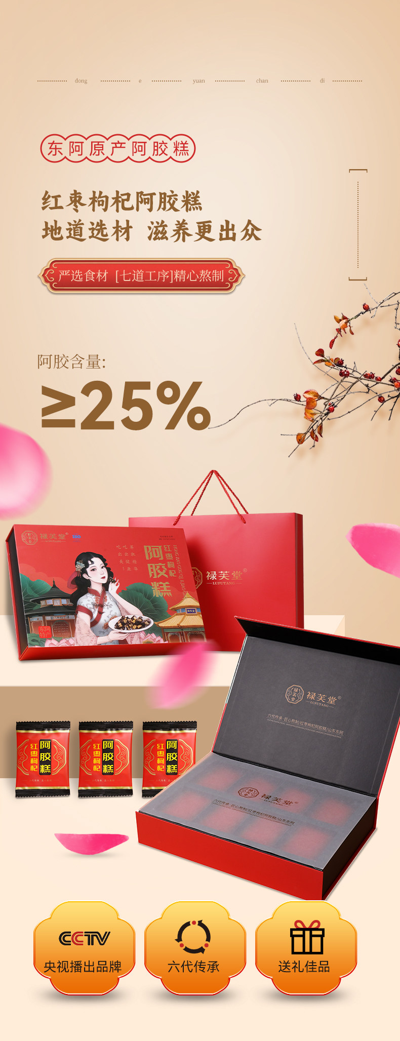 禄芙堂 阿胶糕(红枣枸杞)500g/盒