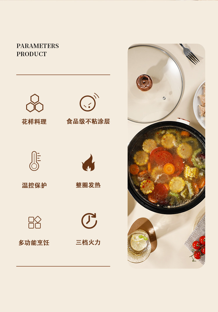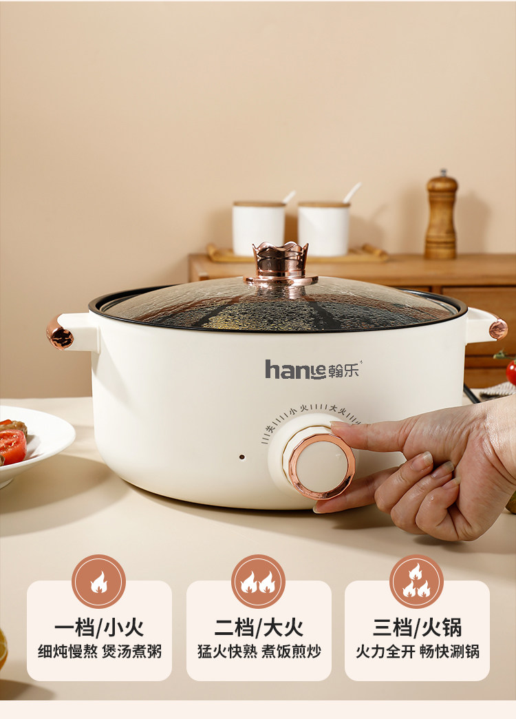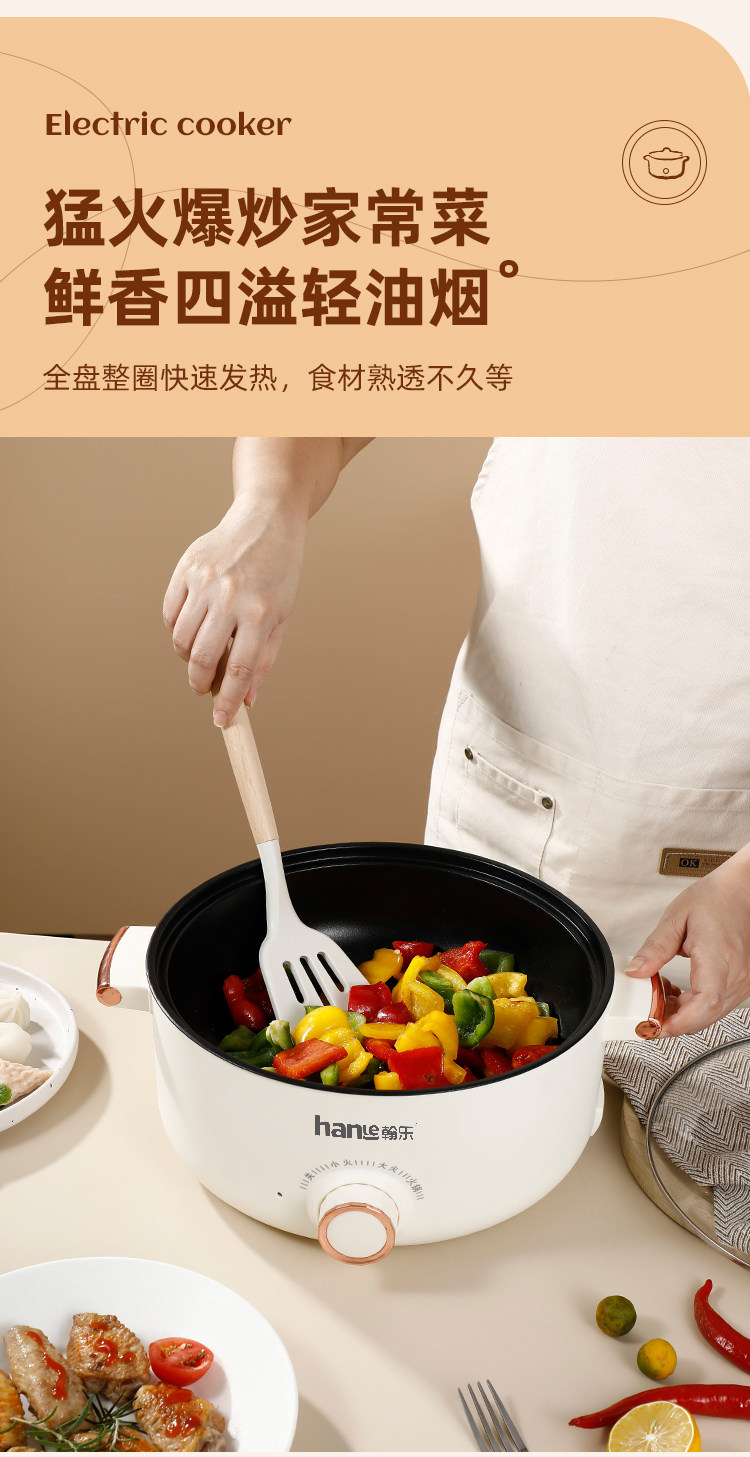 翰乐多功能电煮锅家用电火锅不粘锅电炒锅宿舍煮面锅小电锅电热锅ES-131A