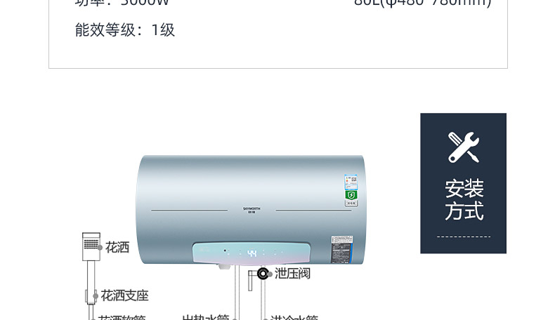 创维D5616电热水器 60L 电脑遥控款DSZF-D5616-60(白)