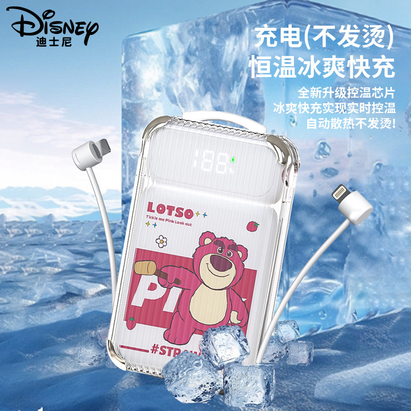 迪士尼充电宝新款大容量电量数显PD快充自带双线多口输出行李箱移动电源 PB100
