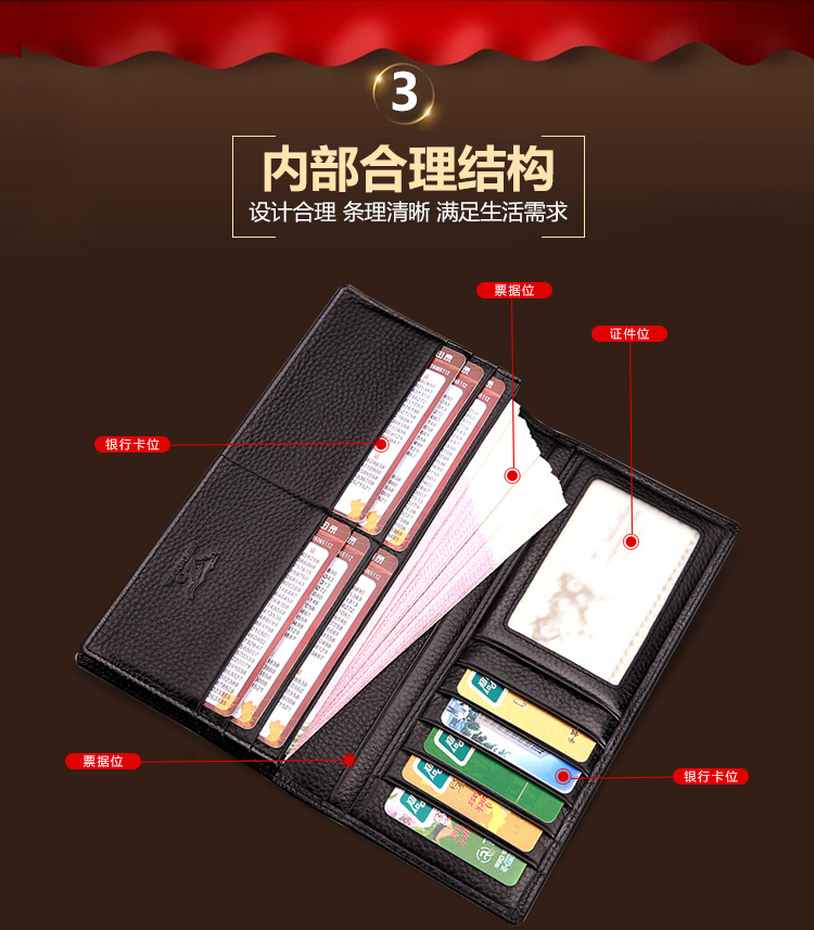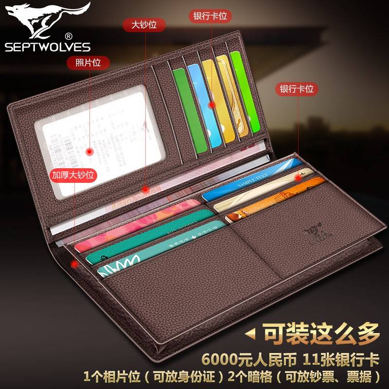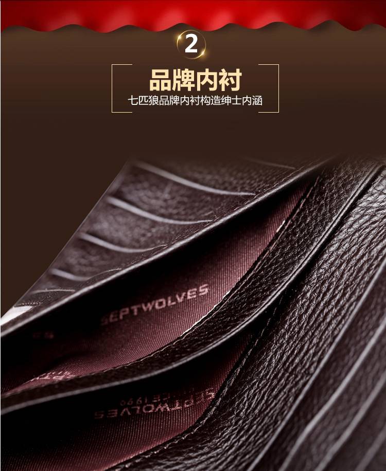 七匹狼长款钱包 牛皮革钱包 咖啡色 XY0866090