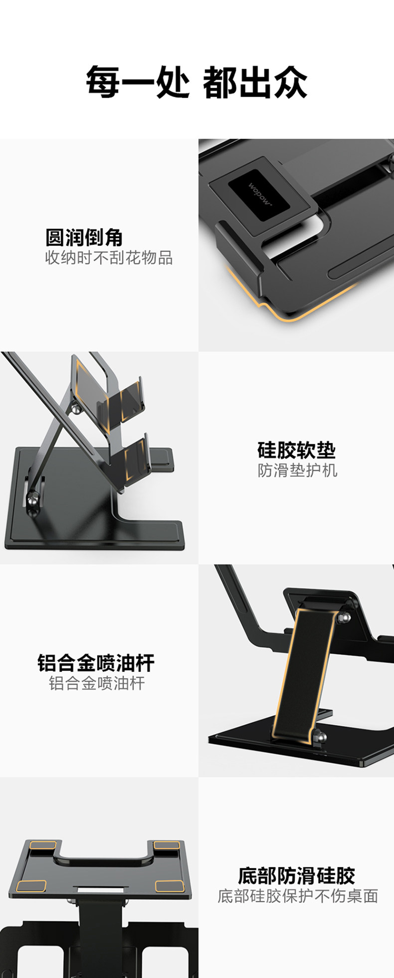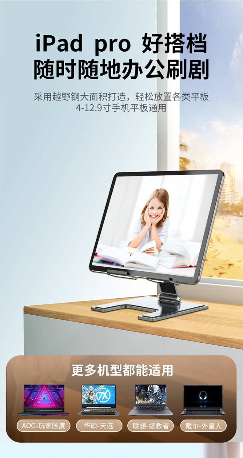 沃品平板电脑多功能桌面支架金属折叠升降支架多角度调节手机支架VB22