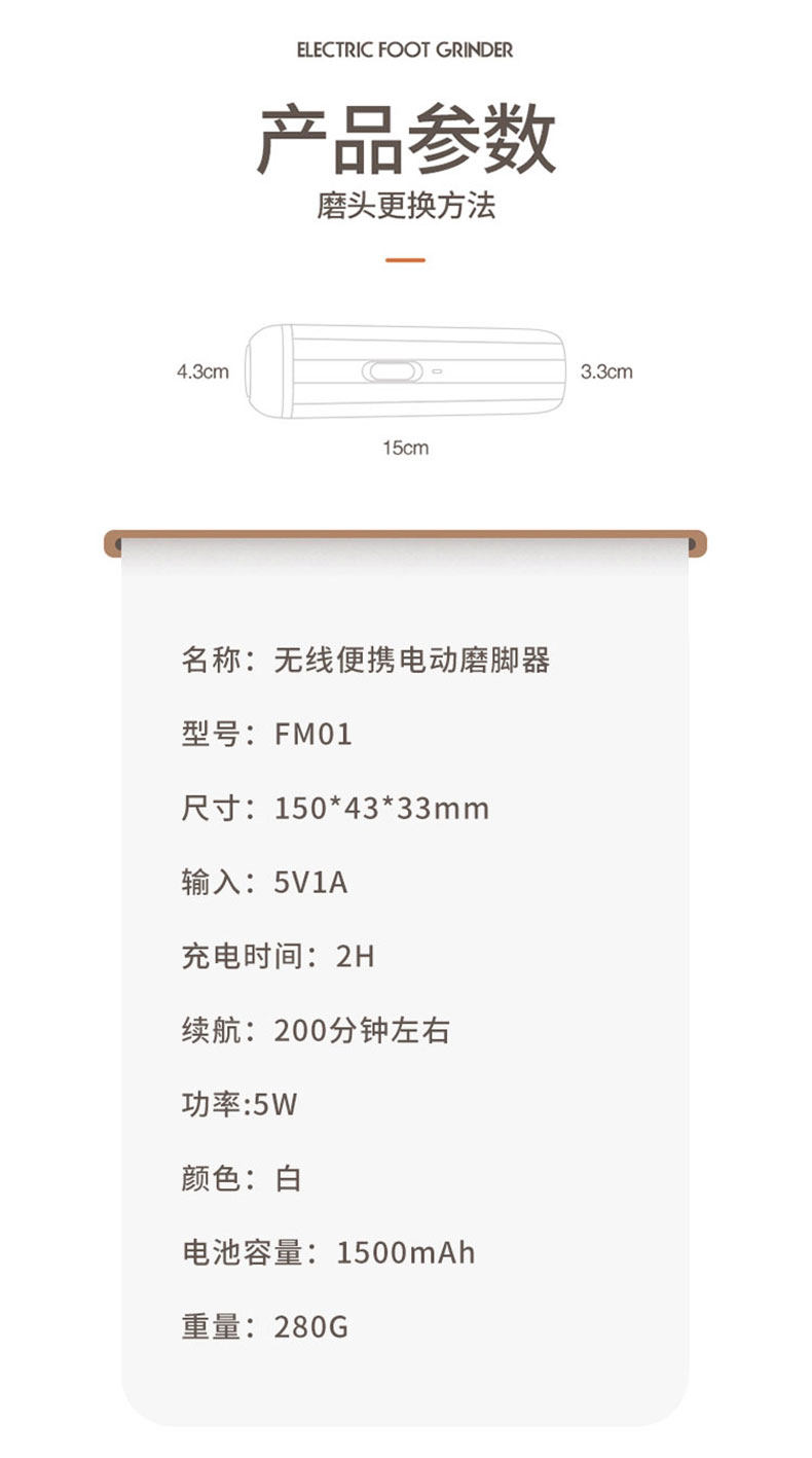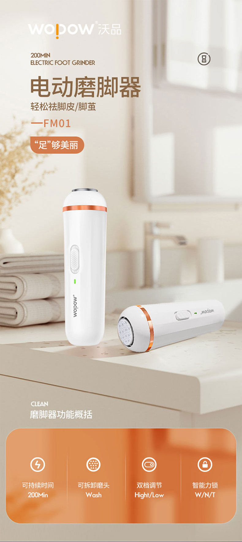沃品无线便携电动磨脚器电动修脚器充电式自动磨脚去死皮老茧磨脚神器修足机FM01