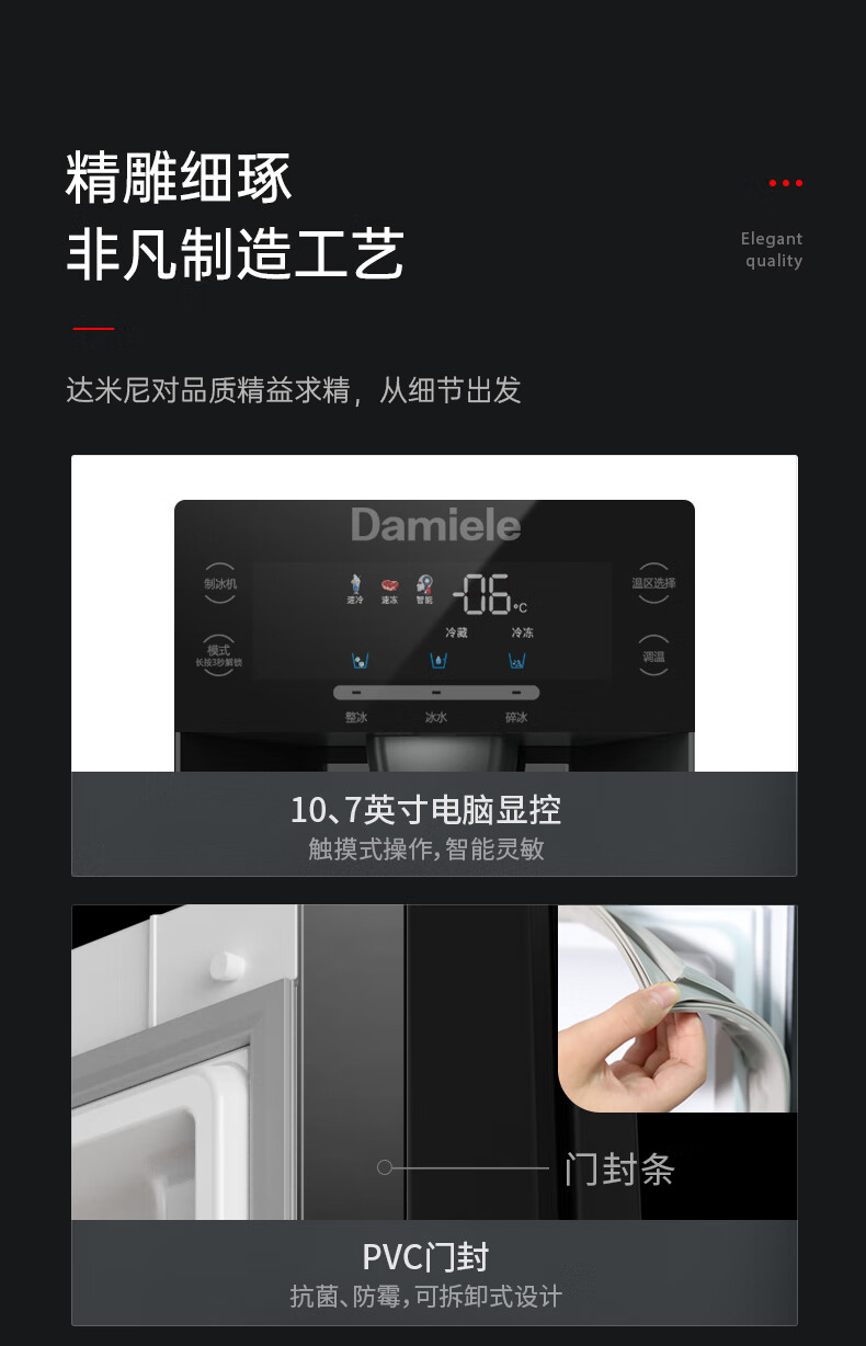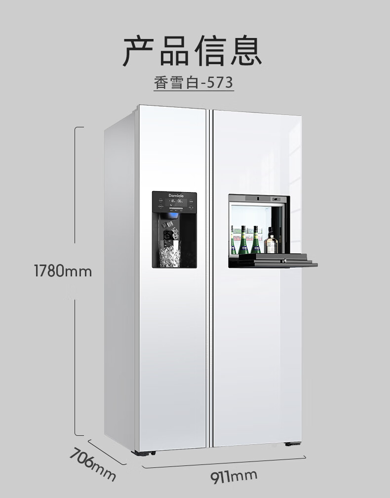 达米尼/Damiele 573L变频风冷无霜冰箱双开门对开门全自动制冰冰箱自动制冰家用大容量白色冰箱制冰 BCD-573WKGDZB(C)香雪白