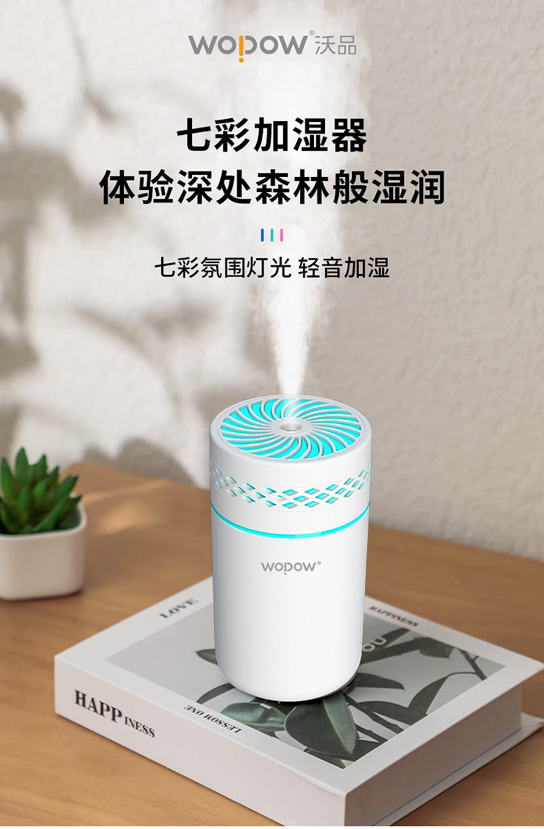 沃品时空杯七彩加湿器静音大容量便携小夜灯雾化器适合办公室家用HM13