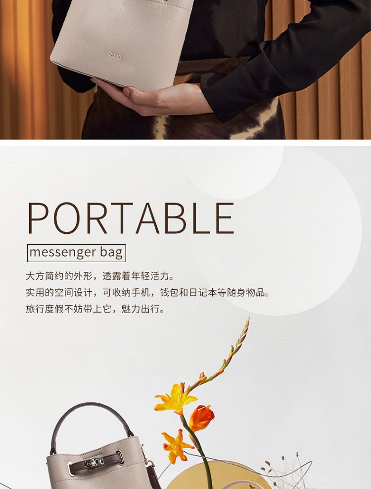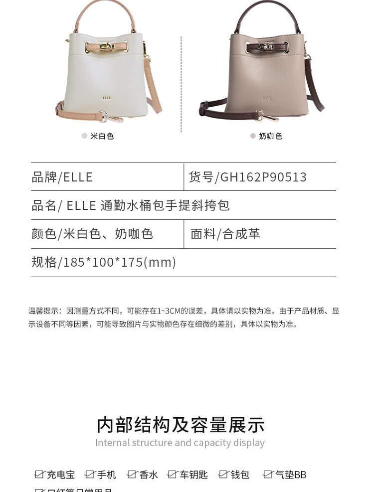 ELLE通勤水桶包手提斜挎包韩版圆筒单肩包大容量时尚百搭女士包GH162P90513BG