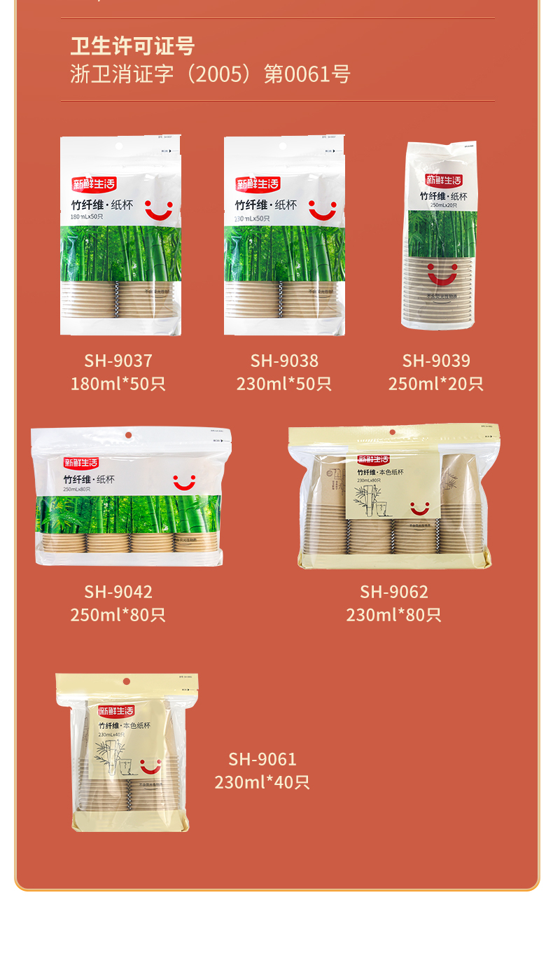 【2包】新鲜生活【竹纤维】纸杯*2包 SH-9038【230ml*50只*2包】
