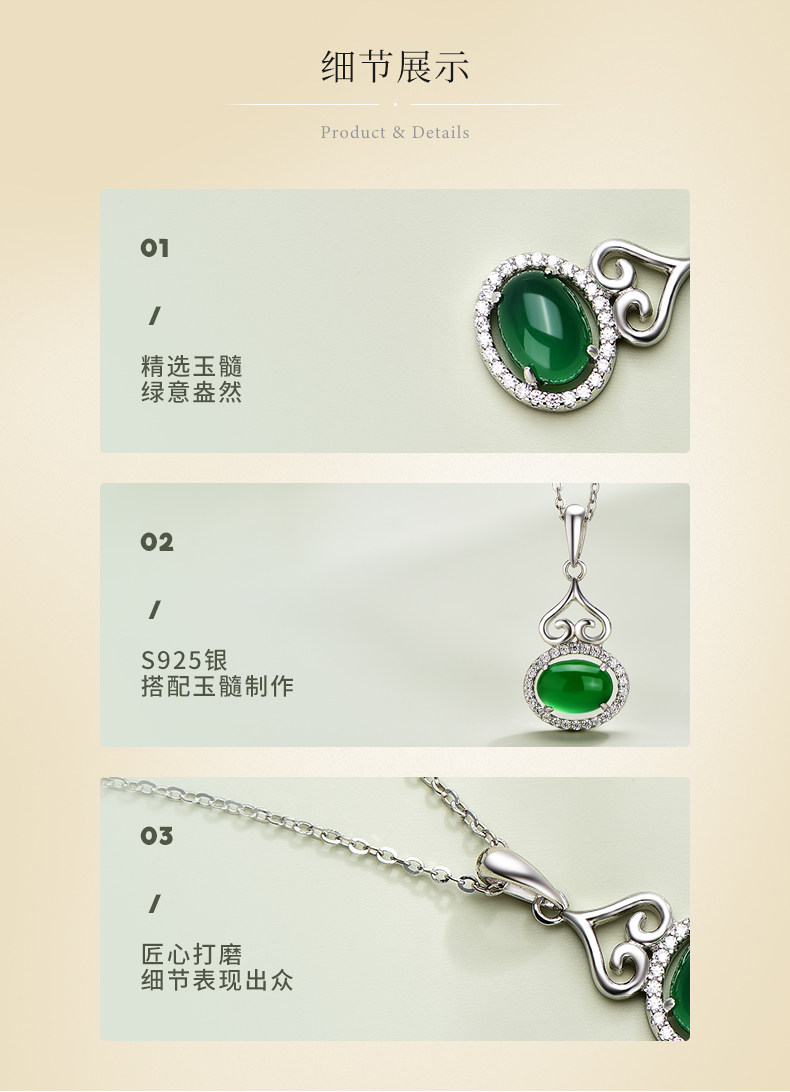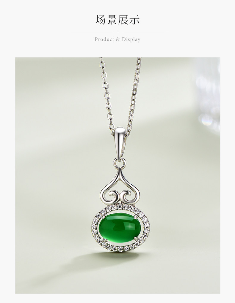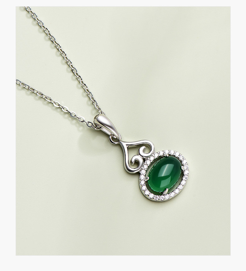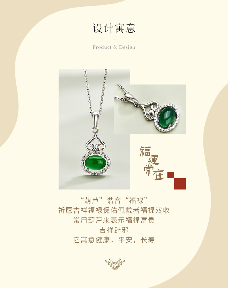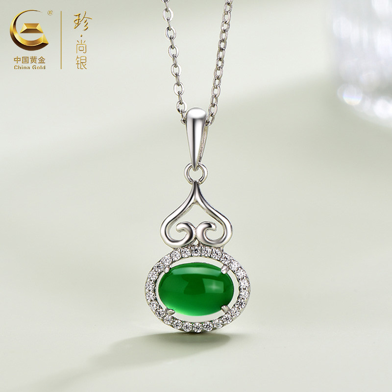 中国黄金珍尚银S925银玉髓葫芦项链小众复古风锁骨链送妈妈礼物ZGHJ200807