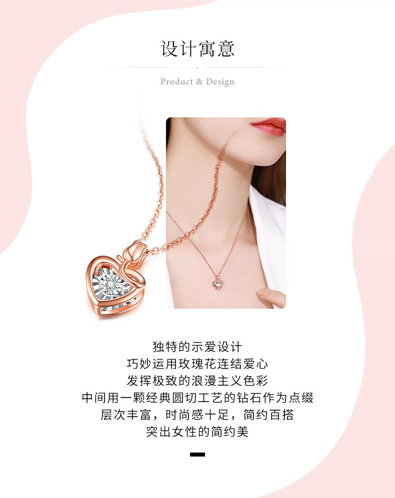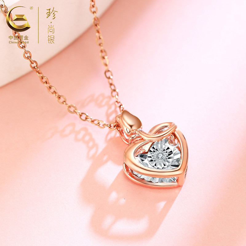中国黄金珍尚银心上玫瑰设计款项链小众轻奢高级感百搭锁骨链ZSYC01678