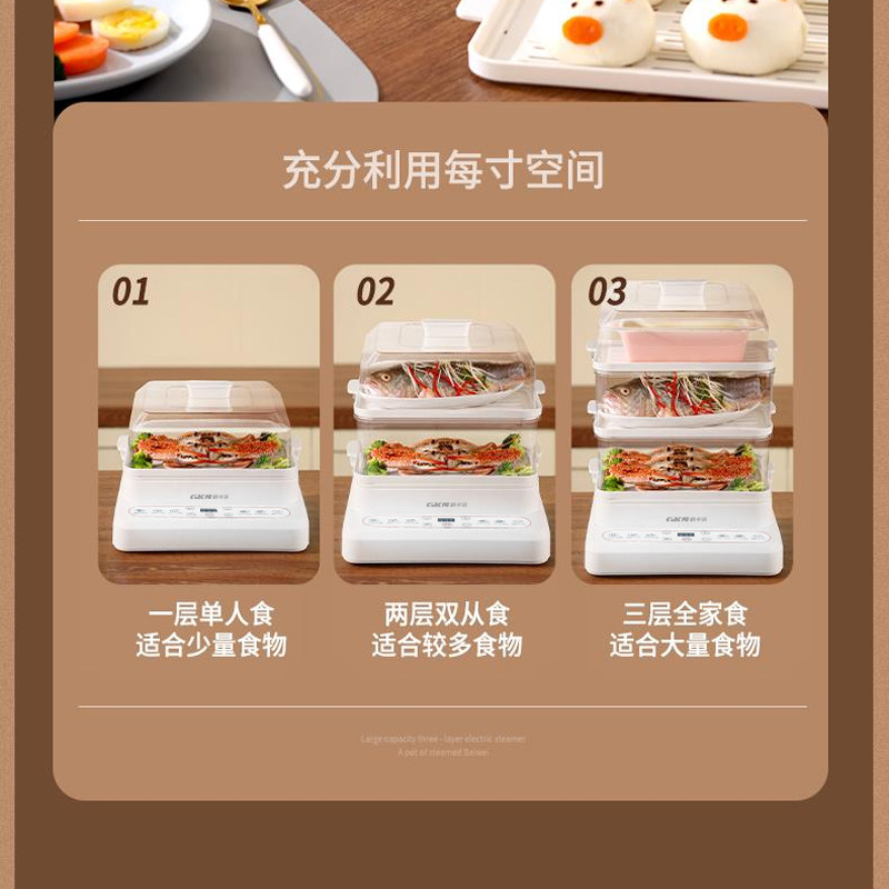 格卡诺多功能电蒸锅智能家用大容量蒸煮一体电蒸箱定时预约早餐机三层新款GKN-DZW-01