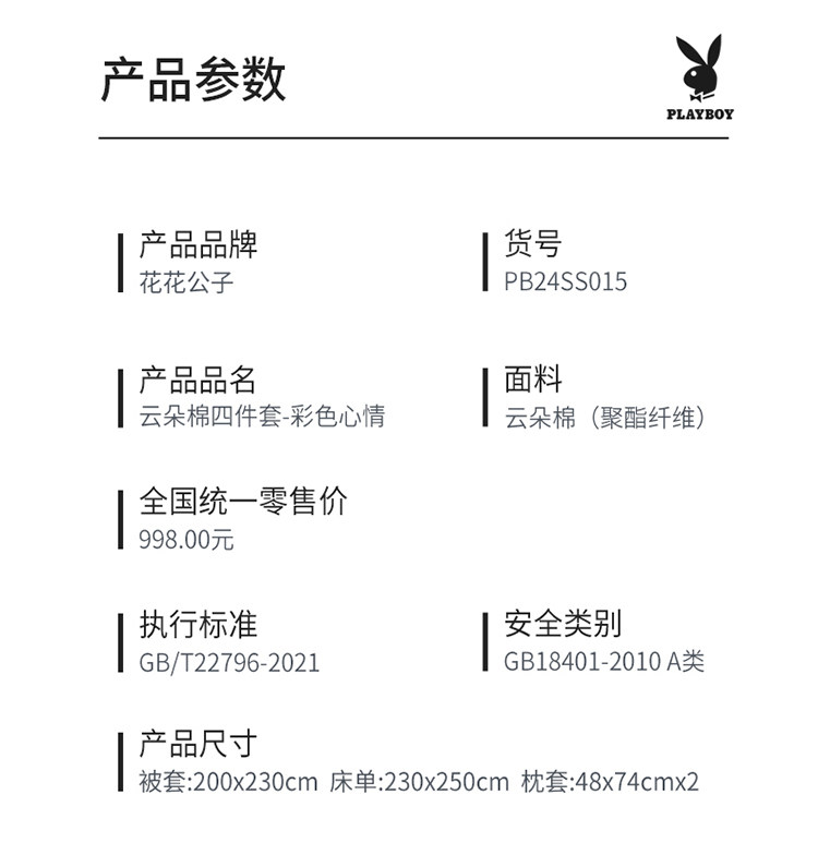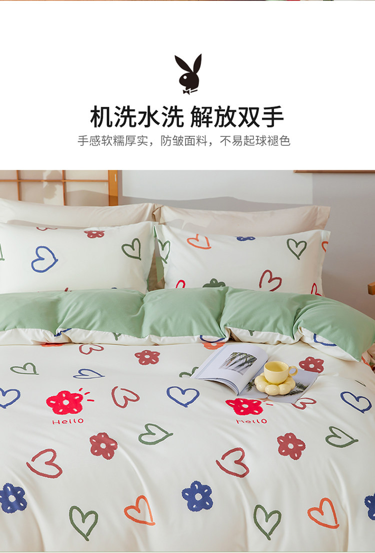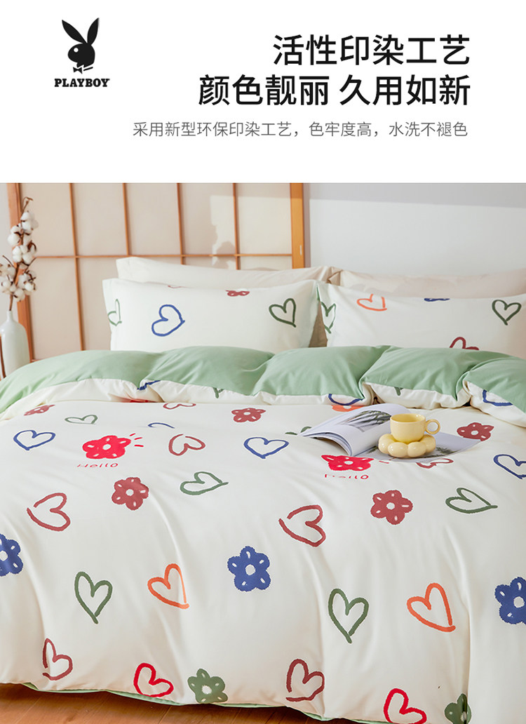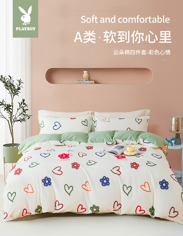 花花公子 云朵棉四件套-彩色心情纯棉被套单件加厚全棉被罩秋冬被单双人床2米宿舍