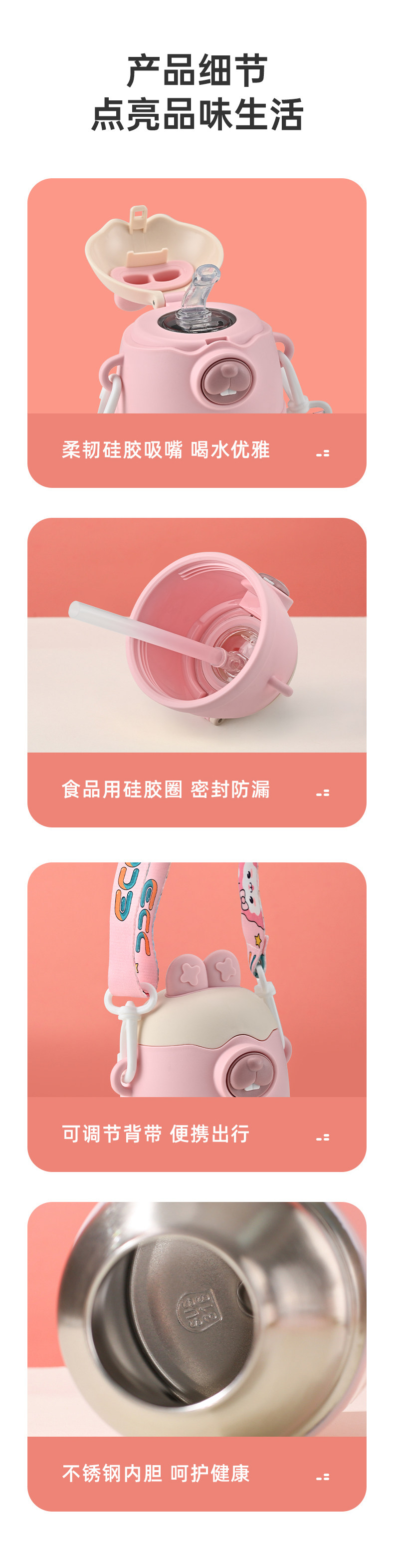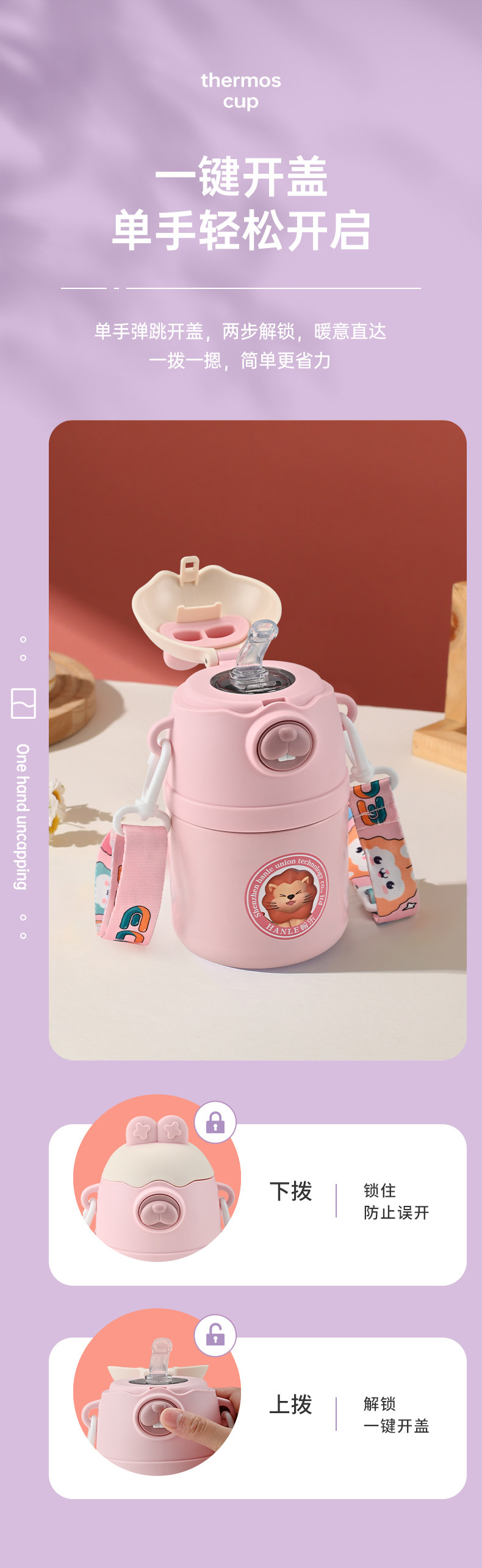 翰乐翰宝宝男女316不锈钢吸管保温杯便携大容量可爱儿童壶水杯HL-HBB316