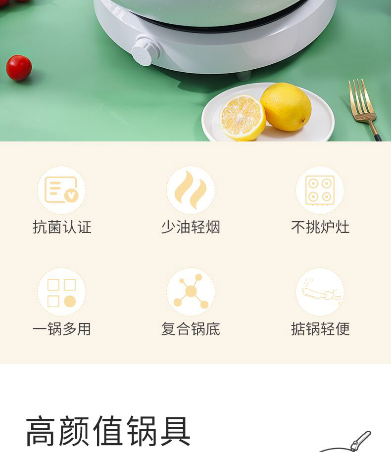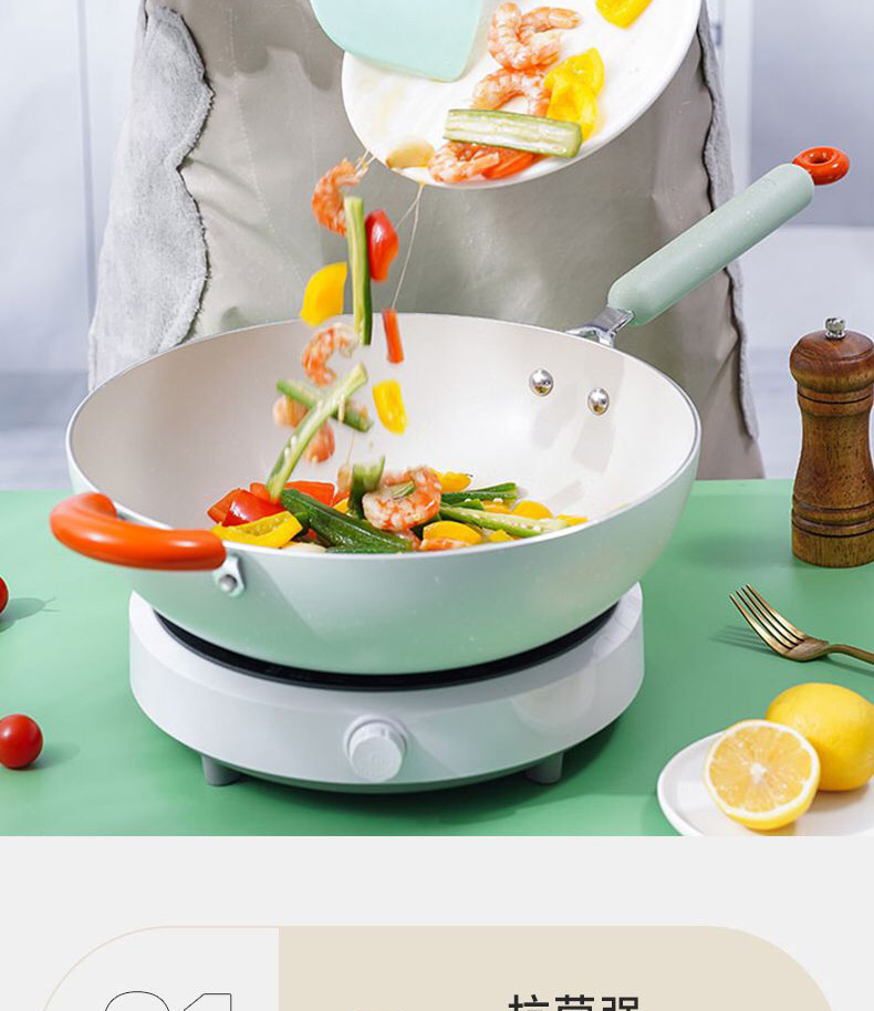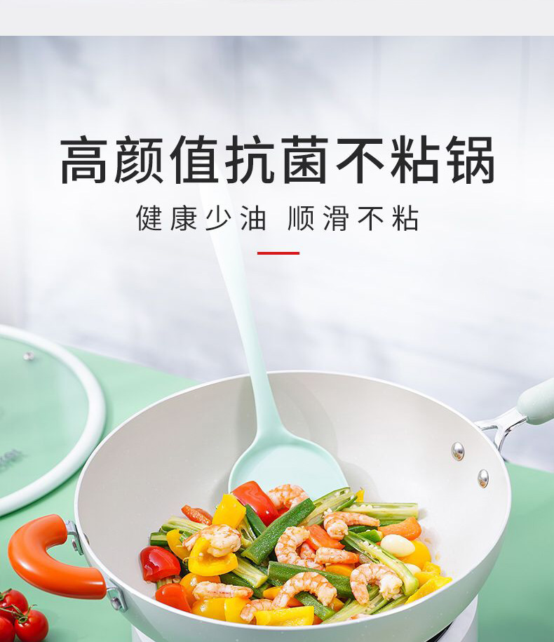 翰乐HL-C166八角不粘炒锅多功能合金高颜值炒锅(象牙白)