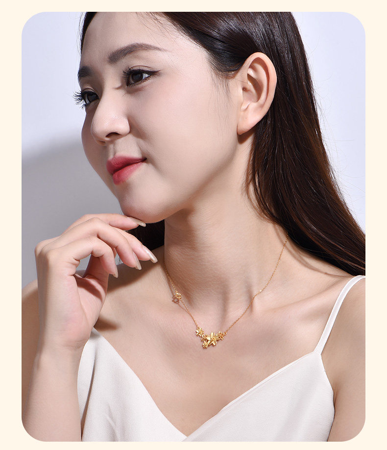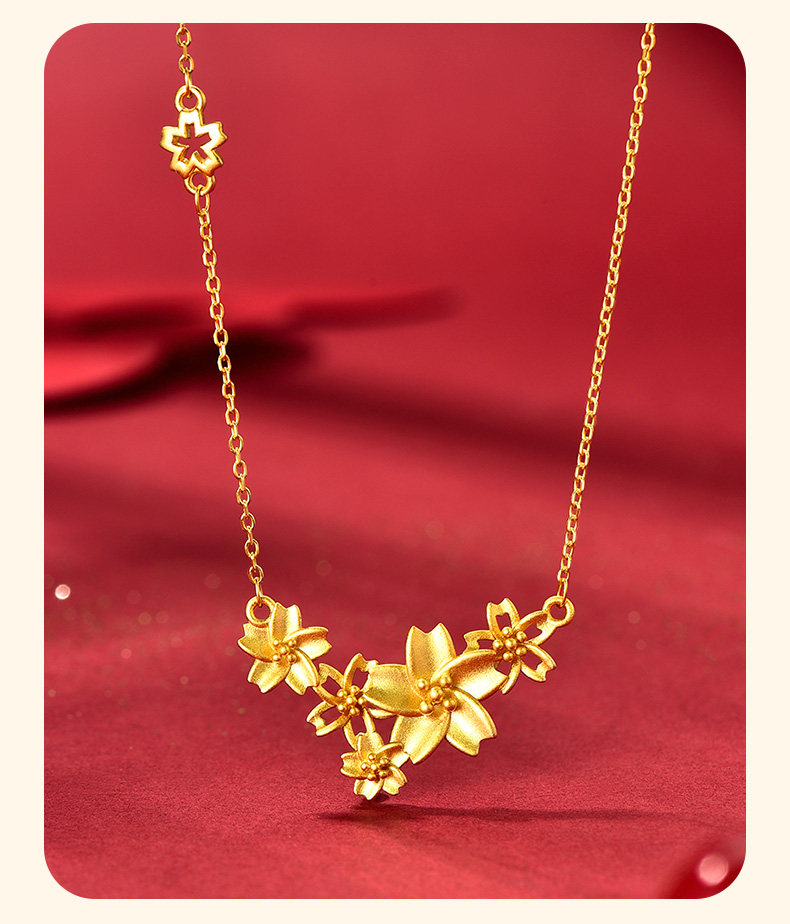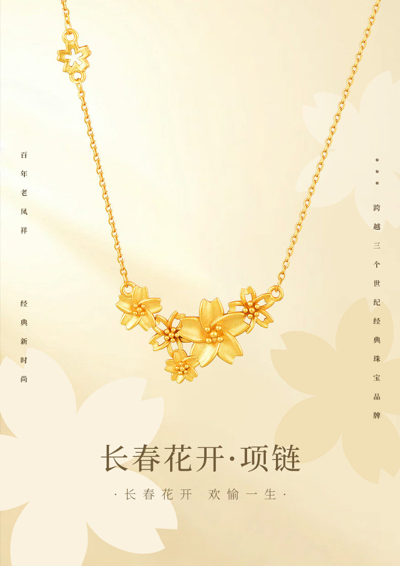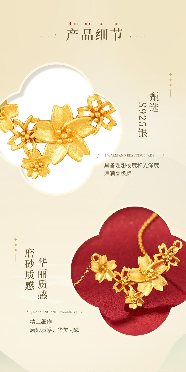 老凤祥纯银925银长春花开欢愉一声喜庆花朵项链LFXSK0310