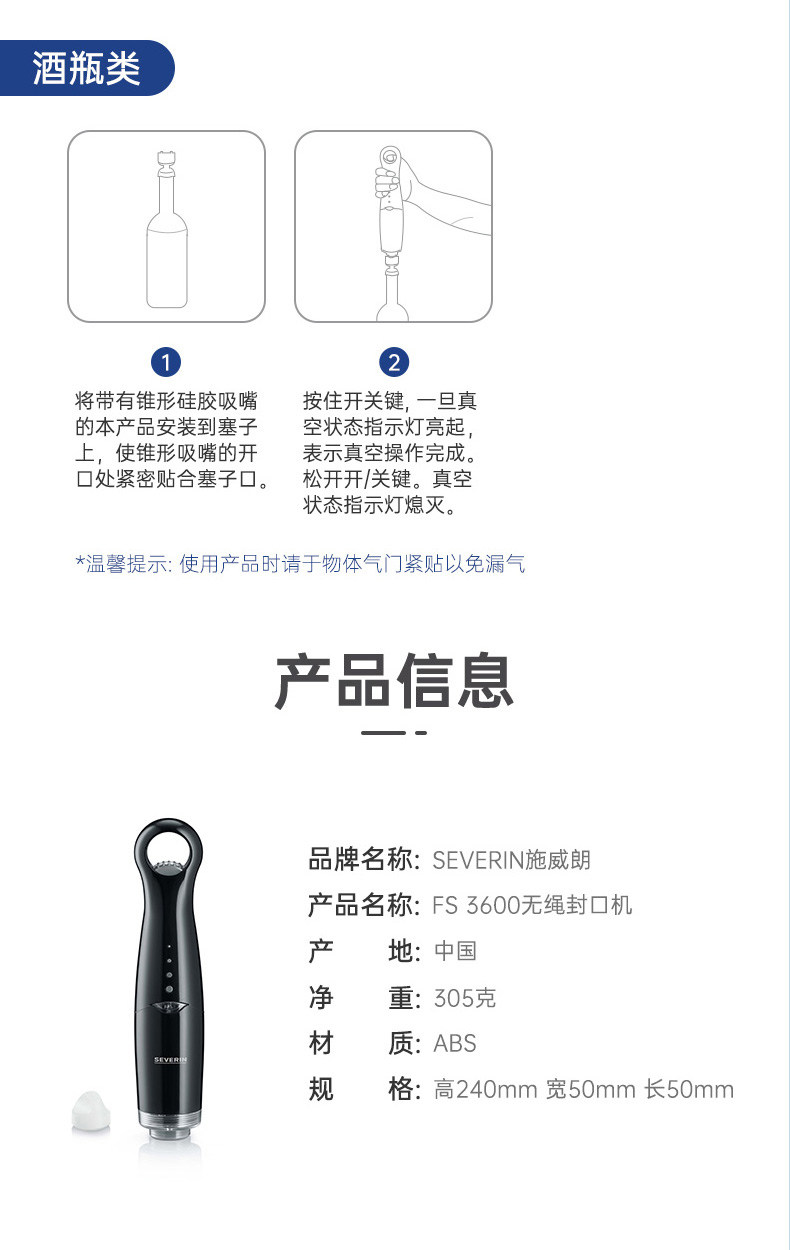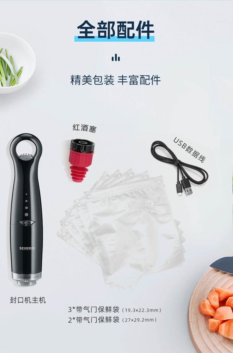 SEVERIN手持真空封口机热密封机神器包装抽真空机小型家用迷你便携零食塑料袋FS3600