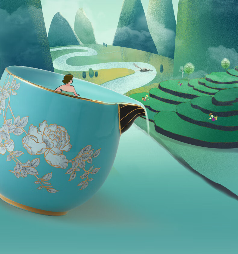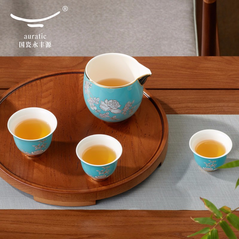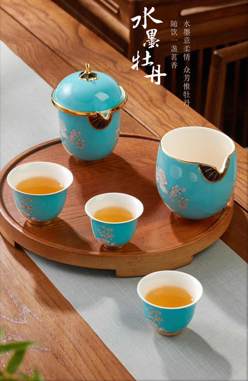 永丰源水墨牡丹 6头旅行茶具套装便携式功夫陶瓷 家用车载旅游茶具 旅行套装 6头