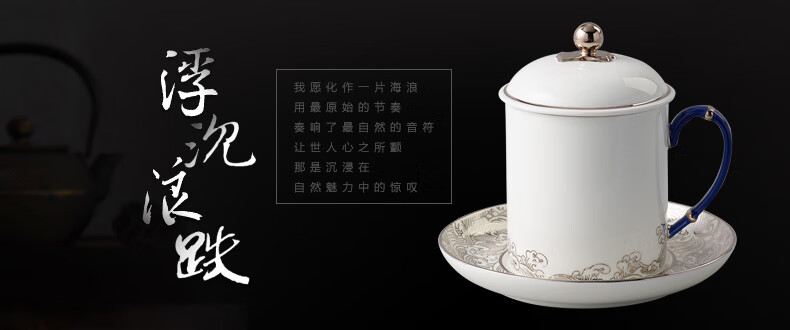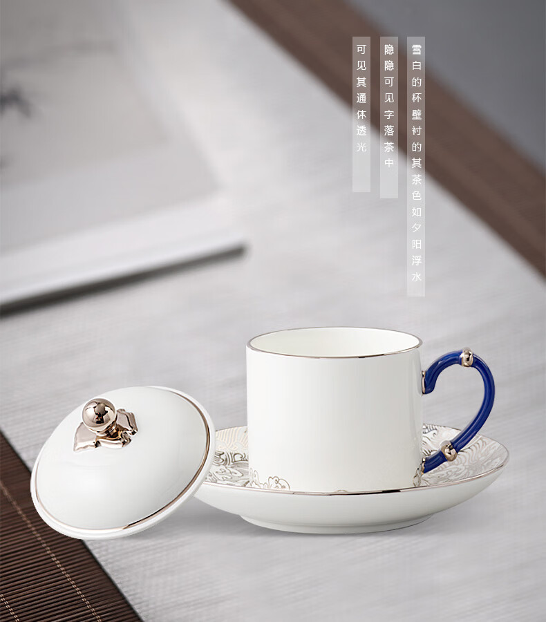 永丰源先生瓷海上明珠350ml茶杯陶瓷会议杯水杯盖杯办公杯 海上明珠三件套盖杯(白金款)
