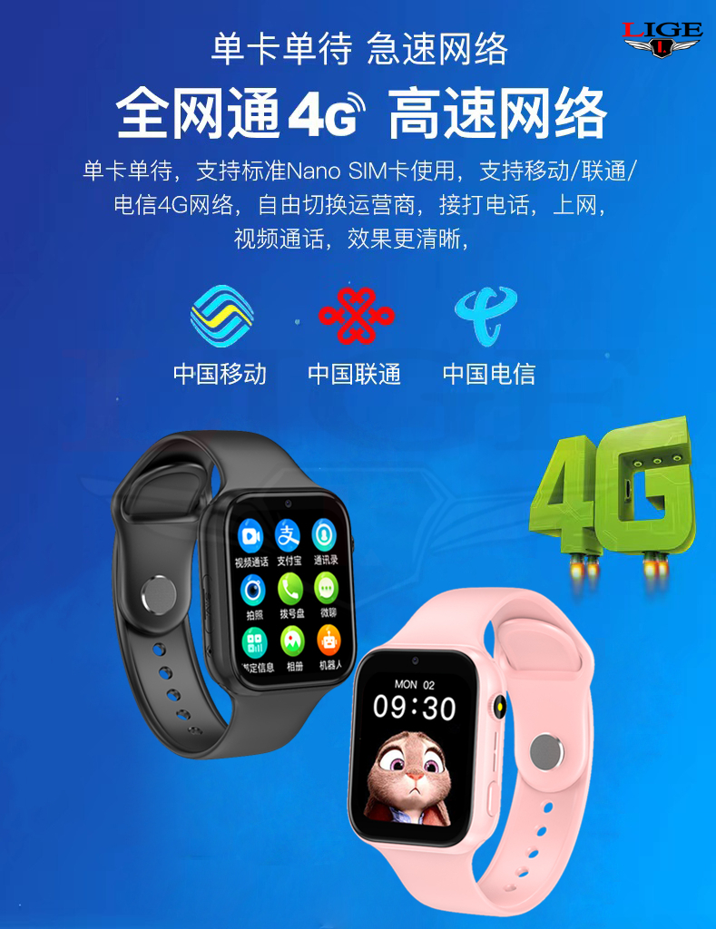 利格LIGE高清通话4G插卡电话手表YQT儿童老人全龄段
