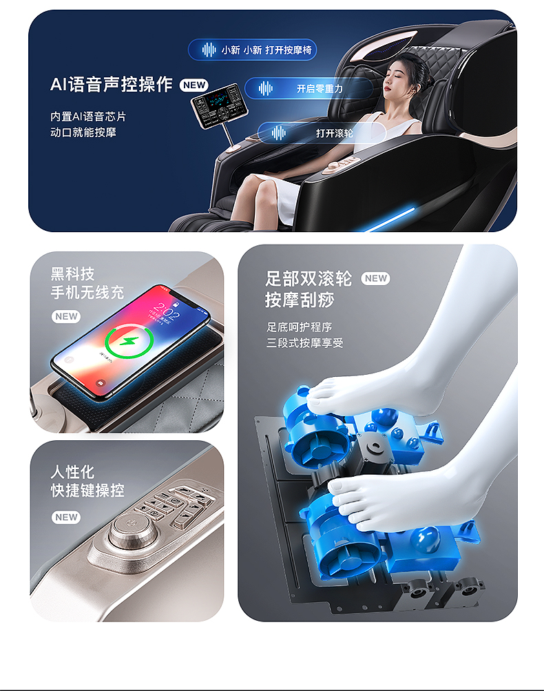 美蒂泰斯按摩椅 家用智能语音控制 零重力按摩椅 7寸LED电脑触控大屏 MAX精钢机芯 AI智能按摩机芯 HiFi蓝牙音响 背部支持手机充电 型号:MDTS-V6
