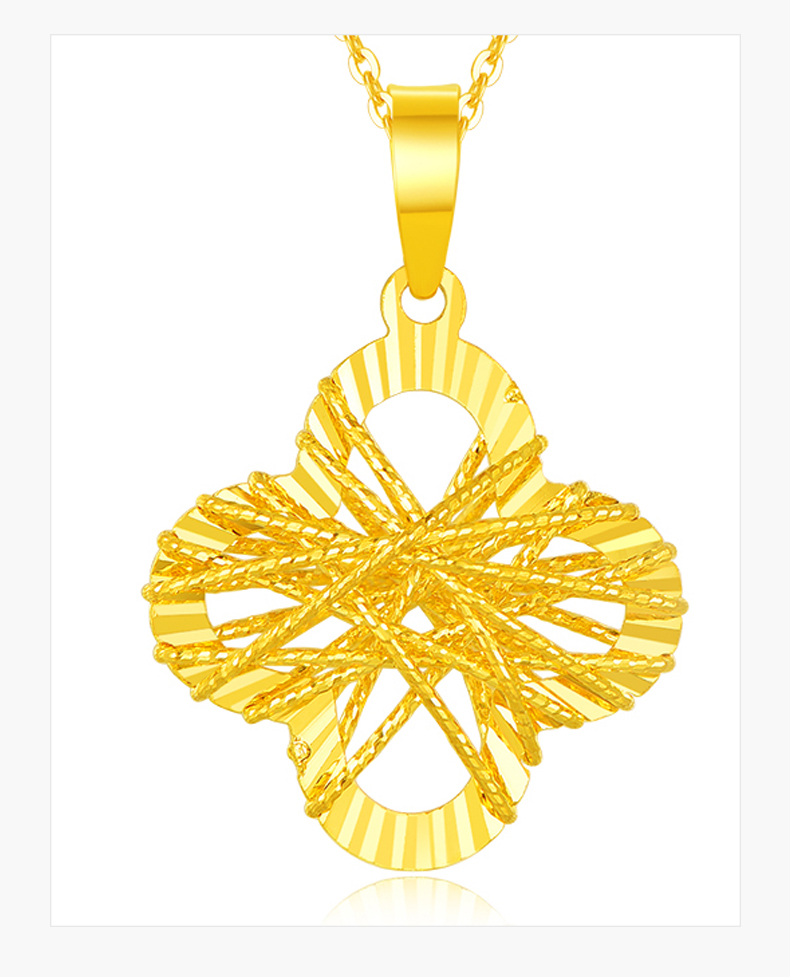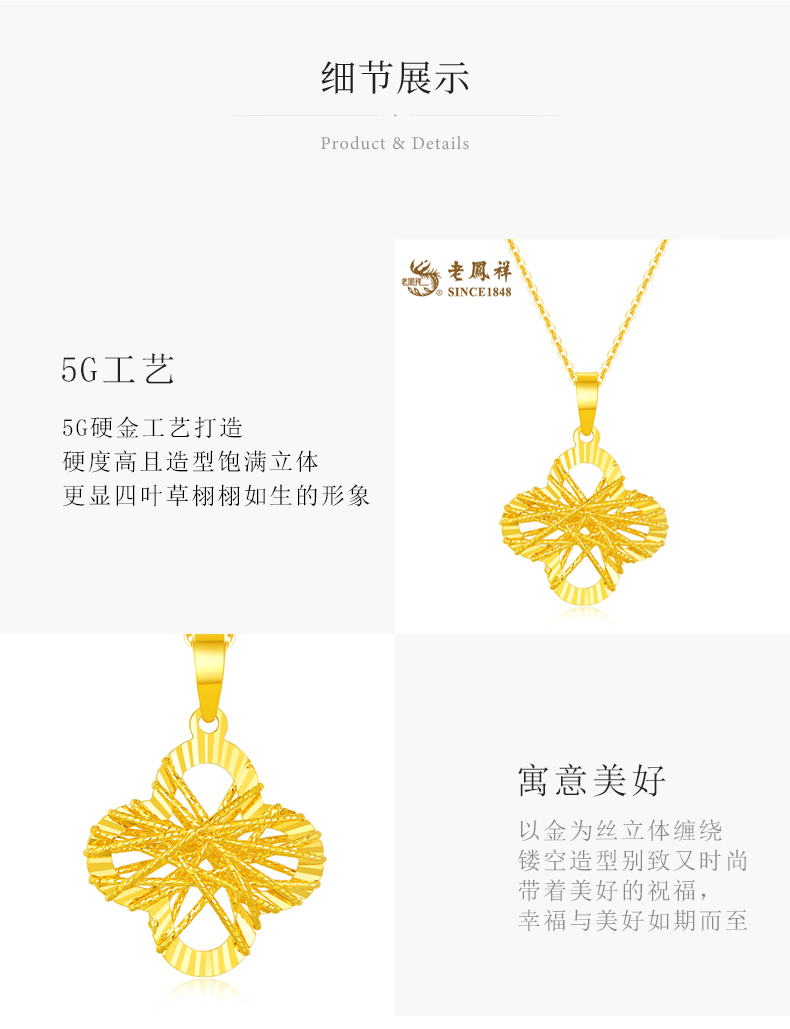 【每证一品】老凤祥【足金车花系列 加倍闪耀】足金设计款<金缕四叶草>吊坠(送S925银链)