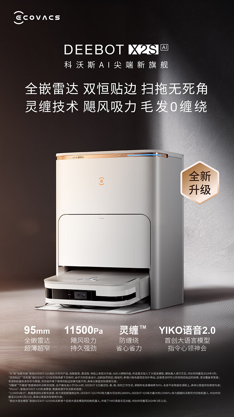 科沃斯X2S扫地机器人扫拖一体自动清洗全自动洗地机 水箱版DMX11
