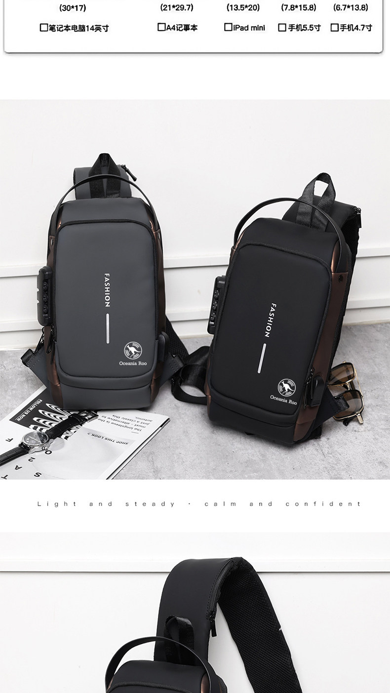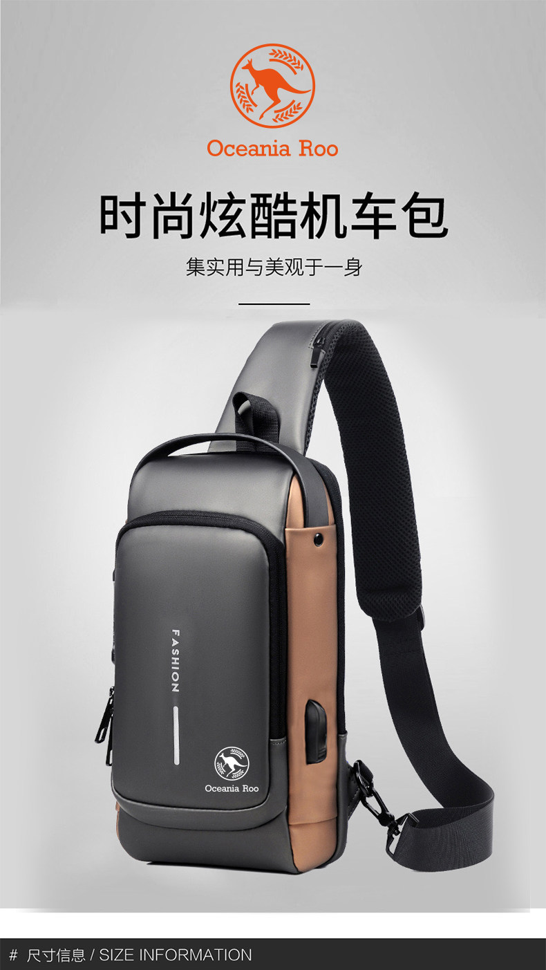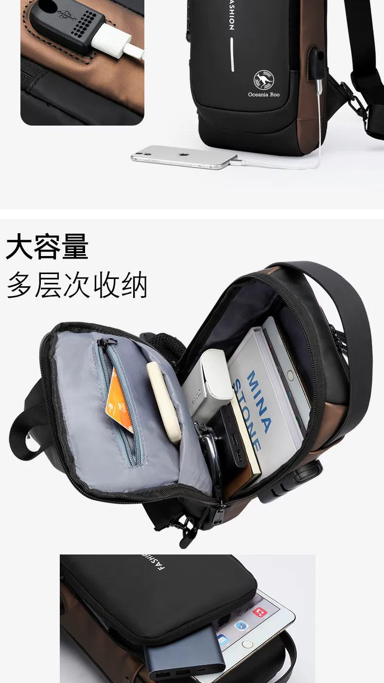 Oceania Roo袋鼠多功能商务单肩包大容量胸包出行斜跨包防水旅行背包DS-8082A 黑咖色