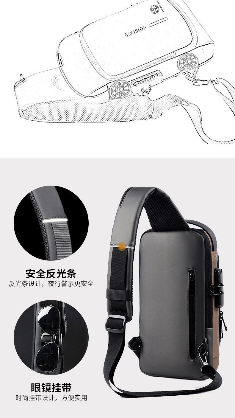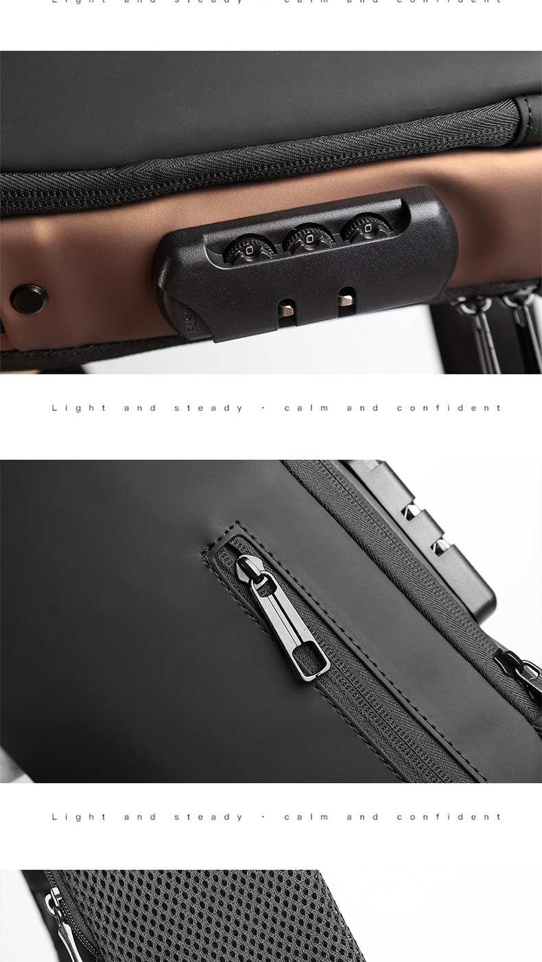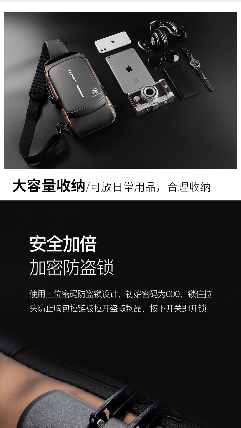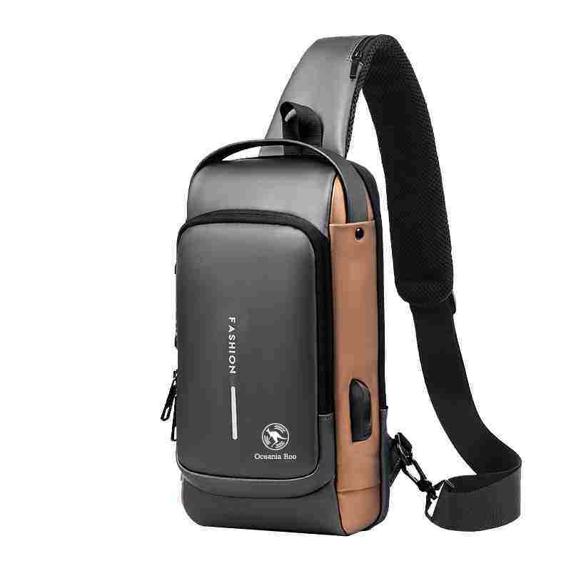 Oceania Roo袋鼠多功能商务单肩包大容量胸包出行斜跨包防水旅行背包DS-8082A 黑咖色