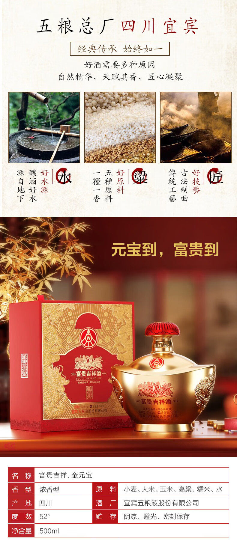 五粮液财富人生.佳酿52度浓香型白酒500ml 精选粮食酒自饮宴请送礼
