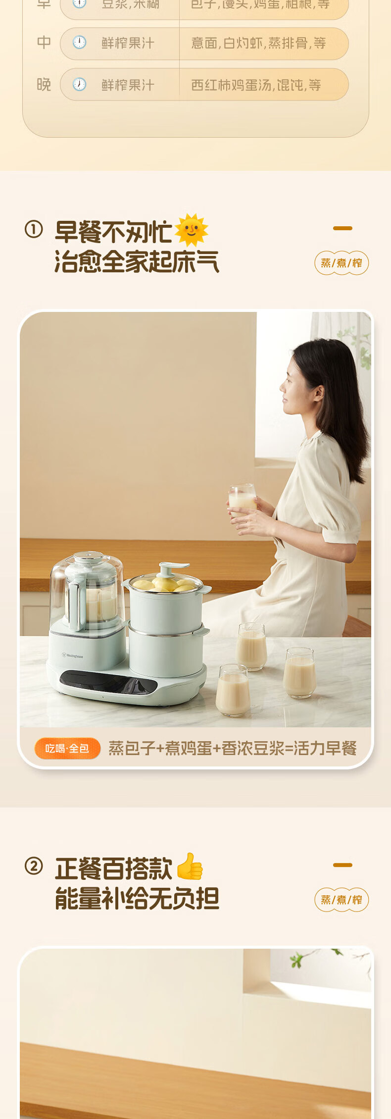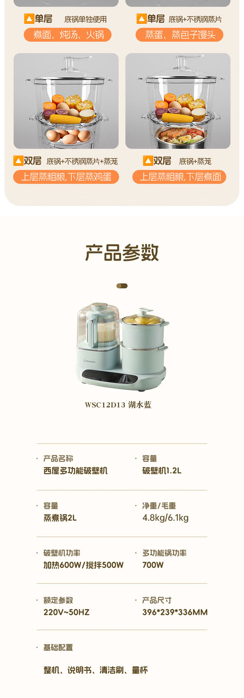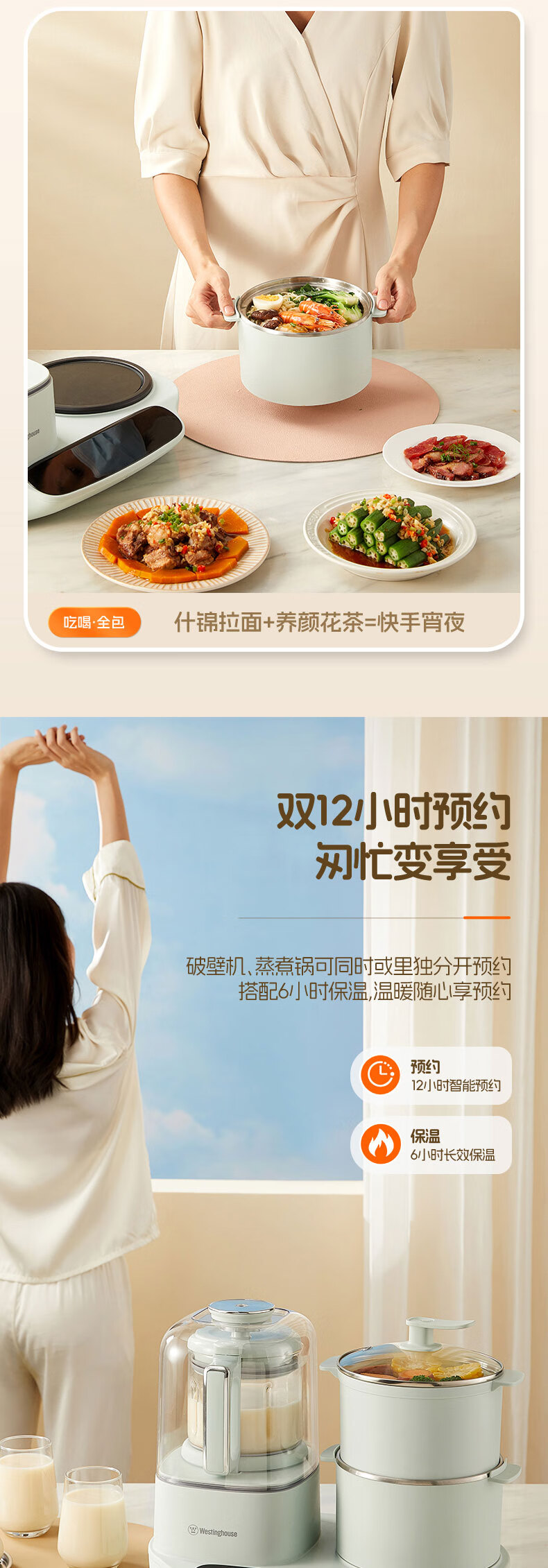 西屋Westinghouse 多功能破壁机料理机 电蒸煮锅 分区双触控 WSC12D13