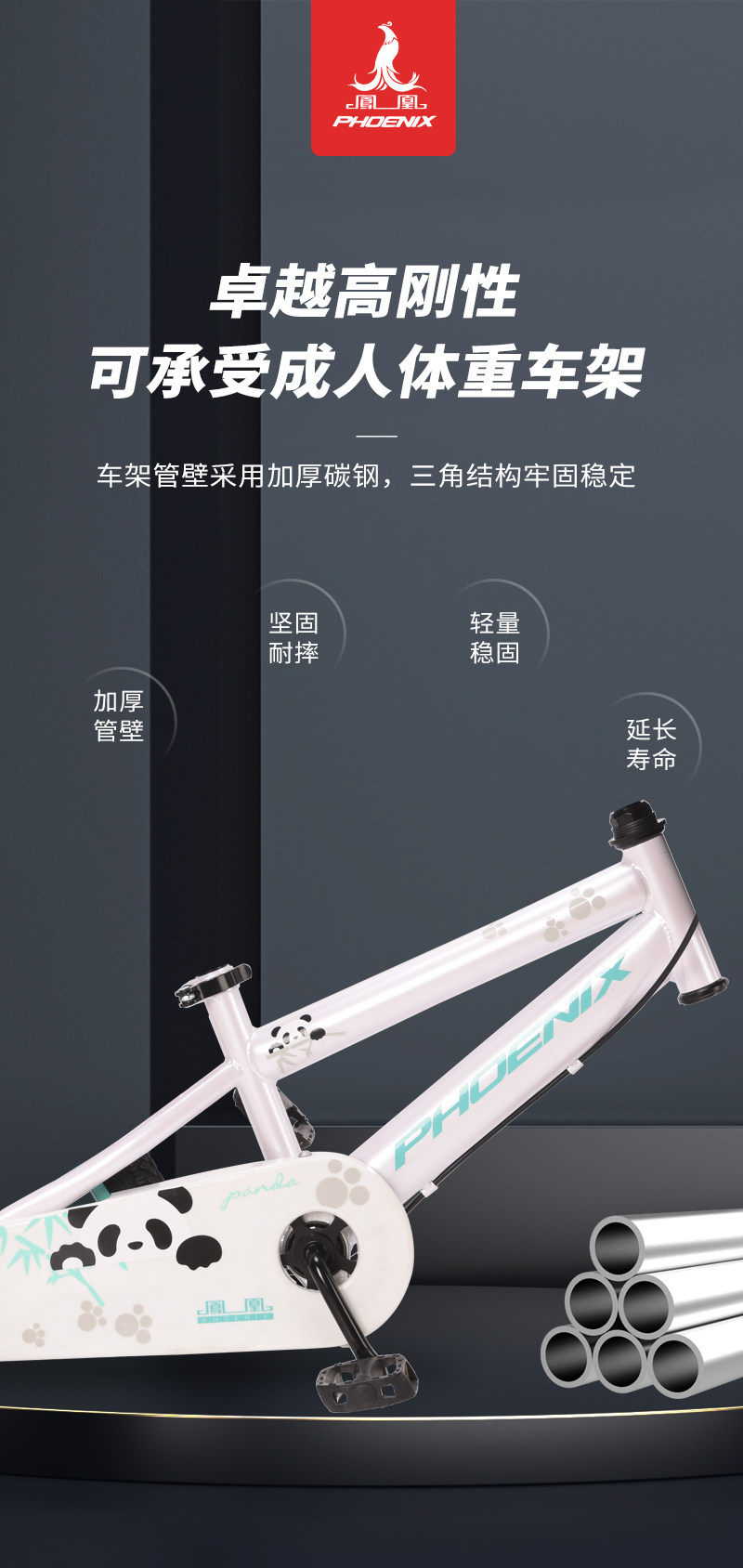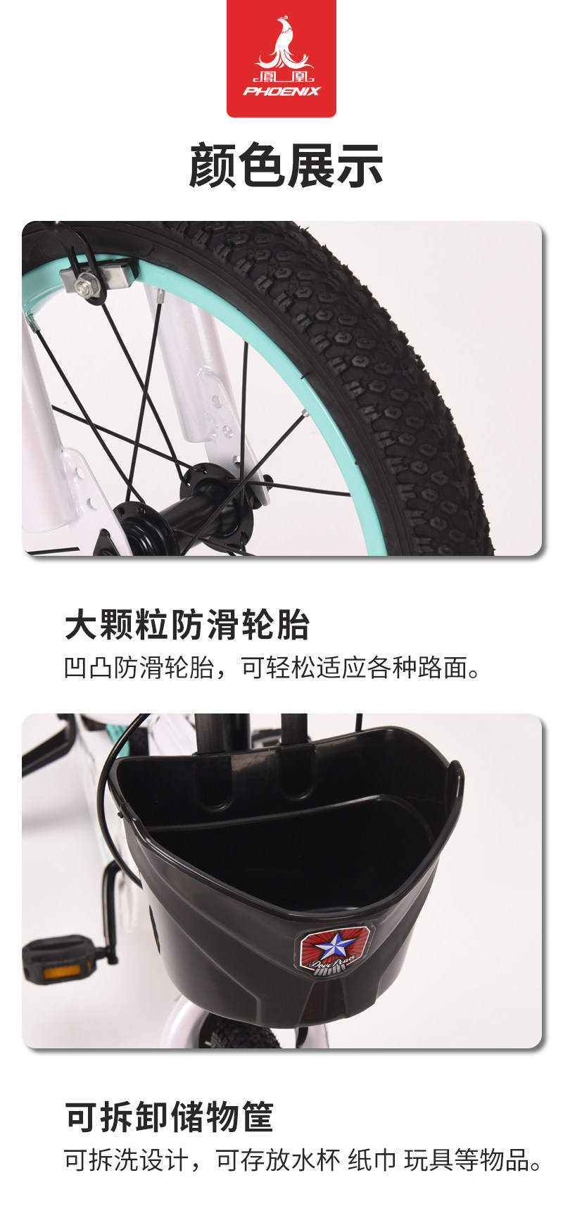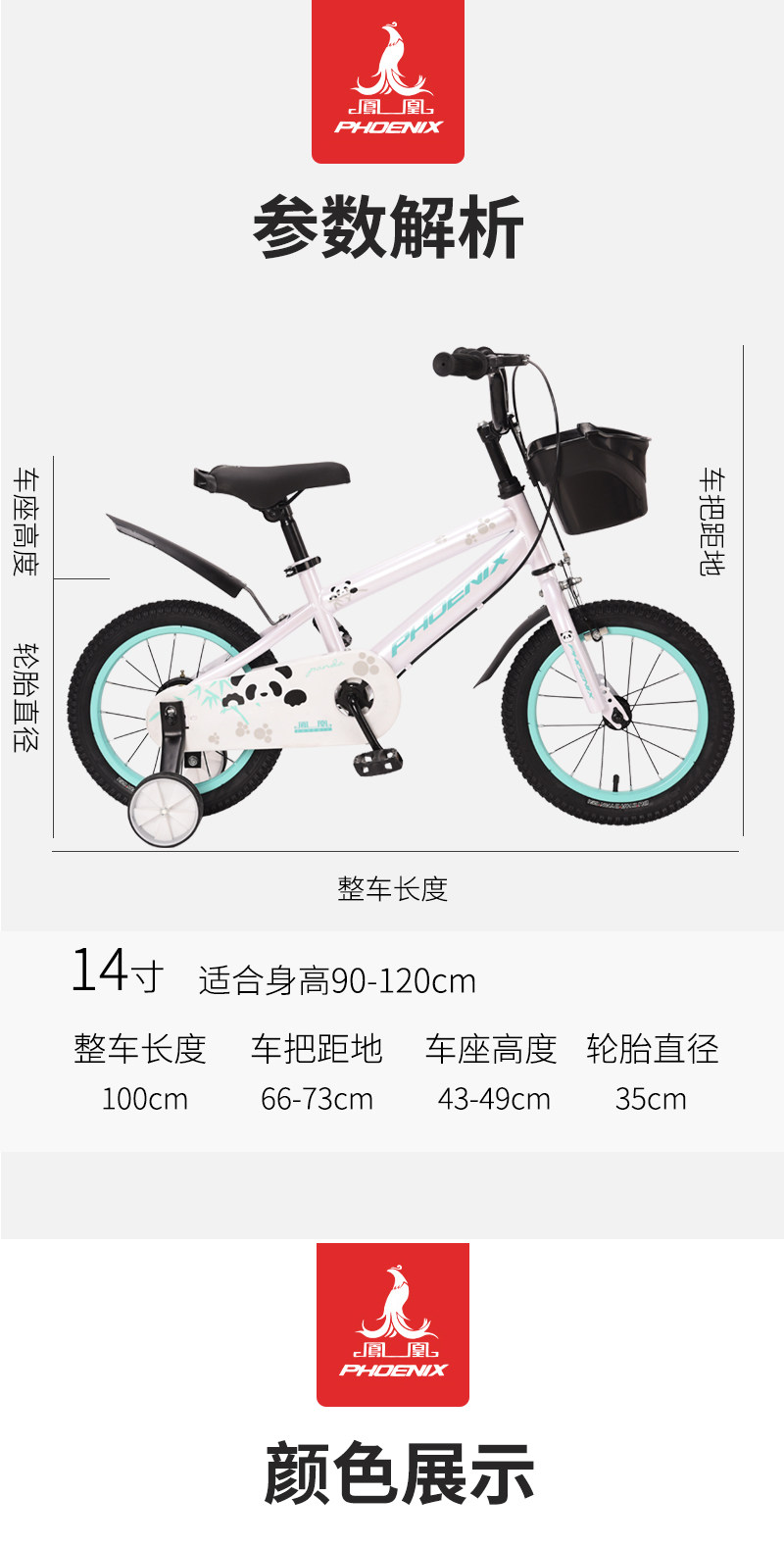 凤凰儿童自行车3-8岁中大童男女孩单车儿童自行车 途悦 熊猫 14寸【2种颜色选择】