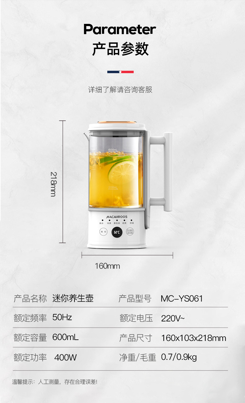 迈卡罗迷你养生壶小型花茶壶养生杯便携式煮茶器煮茶壶办公室家用旅行烧水壶